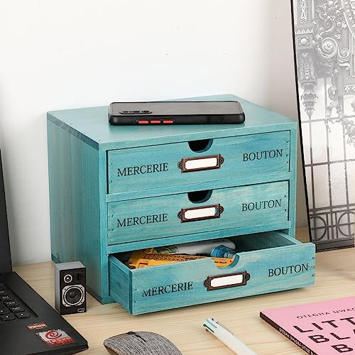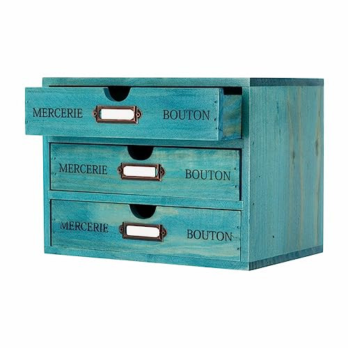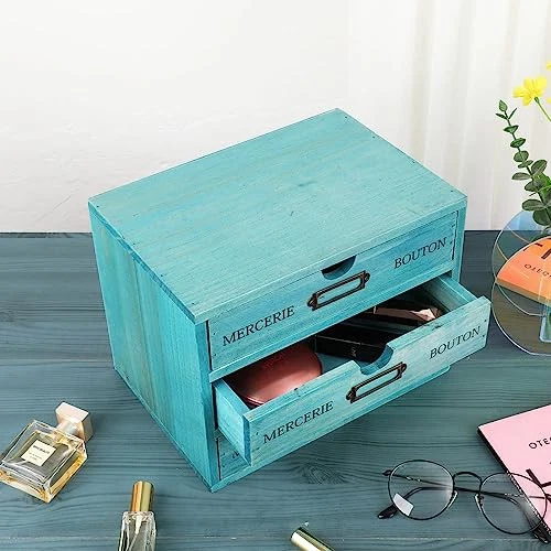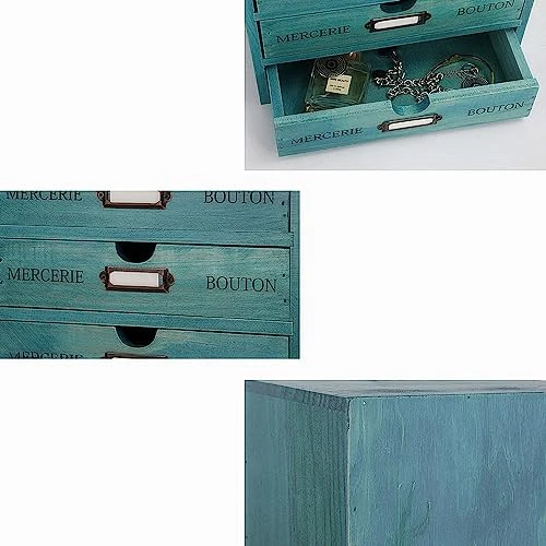 Menu 1. We require immediate payment. 2. We currently accept payment via eBay managed payments only. 3. Once payment is cleared, we will dispatch your shipment within 1-3 business days. Please refer to the "Shipping" tab for more information regarding shipping speed to your destination. Wooden Storage Box Rustic Desktop Organizer with 3 Drawers Office Desk Accessories Shelf Small Craft Storage Containers Apothecary Cabinet and Chest Jewelry Holder for women(BLUE) Product description ? [ ASSEMBLY ] ? A traditional storage box with Vintage Mediterranean Design. The material is natural and stable which eliminates cluttering and save space. No need to assemble. ? [ PACKAGE ] ? A minimalistic storage box with 3 drawers. All drawers have handle with label. ? [ MATERIAL ] ? This rustic handmade storage drawer is made of solid wood with distressed brass metal handle. The surface of the cabinet is painted to make it look more shinier. ? [ APPLICATIONS ] ? A perfect makeup storage box for tabletop of dresser. A housewarming gift for families and friends. ? [ DIMENSIONS ] ? DIMENSIONS : Storage Box 9.8 * 7 * 7.5 inches. Storage Drawer (INSIDE) : 8.3 * 6.2 * 1.6 inches. (PLEASE CHECK THE COMPARTMENT SIZE BEFORE PURCHASE) PLEASE MESSAGE US IF YOU HAVE ANY OTHER QUESTIONS, AND MANY THANKS FOR READING ALL OF THIS. Copyright ©#. All Rights Reserved.