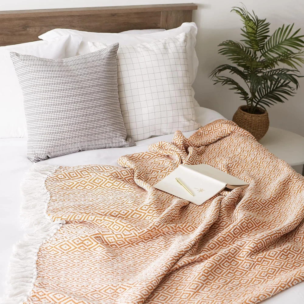 Store New Arrivals Add to Favorite View Feedback Contact Rustic Farmhouse Double Diamond Woven Throw, 50X60, Pumpkin Spice Description Item model number 5994 Style Contemporary Weave Type Plain Number of Items 1 Assembly required No Pattern Geometric Country of Origin India Embellishment Tassel Blanket Form Throw Blanket Theme Vintage Unit Count 1.0 Count Batteries required No Product Dimensions 60"L x 50"W Material Cotton Age Range (Description) Adult Seasons All, Winter, Fall, Spring Included Components Throw Blanket Item Thickness 0.25 Inches Model Name Rustic Farmhouse Water Resistance Level Not Water Resistant Fabric Type 100% Cotton Item Weight 1.82 pounds Special Feature Reversible, Lightweight, Breathable Fabric Warmth Description Lightweight Sport Camping Color Pumpkin Spice Recommended Uses For Product Camping Product Care Instructions Machine Wash Size 50x60" 100% Cotton QUALITY CONSTRUCTION: 100% Cotton throw measures 50 x 60" finished with a 2.5" fringe ADD TEXTURE AND STYLE: Classic look with a modern twist; Decorative fringe added for the perfect finish that won't unravel in the wash FITS THE RUSTIC, VINTAGE, OR DISTRESSED LOOK: This throw has a very chic and trendy look, throw over a couch, chair ottoman or bed to add a splash of color and provide warmth on a cold night VERSATILE SIZE: Use DII throw blankets to stay warm, as a decor piece, over a chair or couch, to wrap housewarming gifts, as a picnic blanket, when camping or give as a gift LONG TERM CARE INSTRUCTIONS: Machine wash with like colors in cold water, gentle cycle; Tumble dry on low; Wash before first use DII offers full collections of trend based designs, bringing you fresh, innovative lines of quality home products for every season. Let DII products become a valuable part of your life. ABOUT US We offer the best prices around on high quality products. Our E-store includes media such as books, movies, music and games while offering electronics, toys, sporting apparel, clothing, tools, general home, garden items and more. SHIPPING We are always working hard to ensure your package arrives as soon as possible. Please understand that some factors like weather, high postal traffic, and the performance of shipping companies are outside of our control. We offer free shipping to the lower 48 states and ship within 2 business days of payment, usually sooner. We do not accept P.O. Boxes. Please provide a physical address. For shipping outside of the continental USA, we only use eBay's Global Shipping Program.The item is shipped to KY and then sent to the rest of the world. International customers are responsible for all duties and taxes. Continue to check out in order to calculate costs for shipping the item to your country. Messages regarding eBay's Global Shipping Program MUST be directed at eBay EXCLUSIVELY. RETURNS We offer a 30-Day Return Policy on items which you are not completely satisfied with. You have the option for a full-refund or an exchange of the item. No returns are available on items shipped outside of the USA. PAYMENT We accept PayPal. CONTACT US This page content is yet to come Please ad us to your favorite seller and visit again later Thank You CUSTOMER SATISFACTION We try our very best to make sure every customer is completely satisfied. If there's a problem, message us! We're happy to help. WE ACCEPT Copyright © 2021 AutoDS. | All Rights Reserved