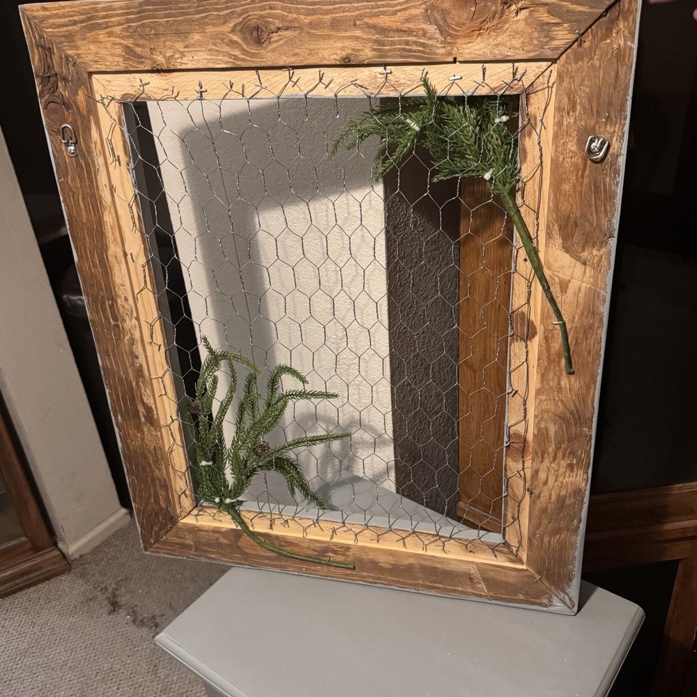 This farmhouse wood/wire window frames with greenary is a charming addition to any rustic wall decor. The large rectangular frames are made of wood and, featuring a gray color with a printed decorative finish. The farmhouse style and hanging/wall-mounted design add a touch of home sweet home to any space, making it a unique and eye-catching piece of wall decor for your home.