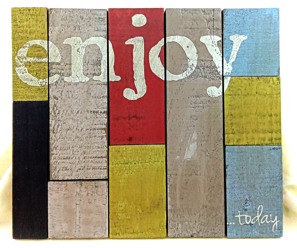 Enjoy Today Wood Slat Board Sign Rustic Distressed Color Blocks White Tan Blue Red Black 11.5x10". This sign features color blocking & letter stamp look. Sign is a wood slat board. Condition is Brand New/Unused. Measurements are 11.5"Wx10"H. Easy to hang with metal sawtooth on back. Made in USA. Please check out our photos for further information. If you have any questions or concerns, please contact us. Please check out The Burly Owl Lady eBay store for more great products! Shipped USPS. We ship vintage and new items. We carefully pack with care to ensure the safety of each item. We do not pass these packaging costs onto the buyer. Furthermore, we do not charge any extra fees for handling. We only charge for the USPS shipping charge. We do monitor shipping prices frequently. In most cases, we do find the USPS to be the most inexpensive way to ship our products. We try to be as detailed as we possibly can in our photos and descriptions. We try to mention any imperfections in our vintage items. We may miss things from time to time or our photos may not be enough clarification for you to see the item. We will be glad to answer any questions or send you more photos. If at any time, you have a question or issue, please contact us immediately. We will contact you within 24 hours. We want to make sure you have a good experience in purchasing any of the products. If you are happy with your purchase, please leave feedback. It will help us to grow and offer more great items in our store! Thank you for your interest in one of the many products in our eBay store! Renee Burly Owl Lady