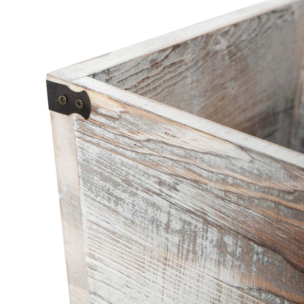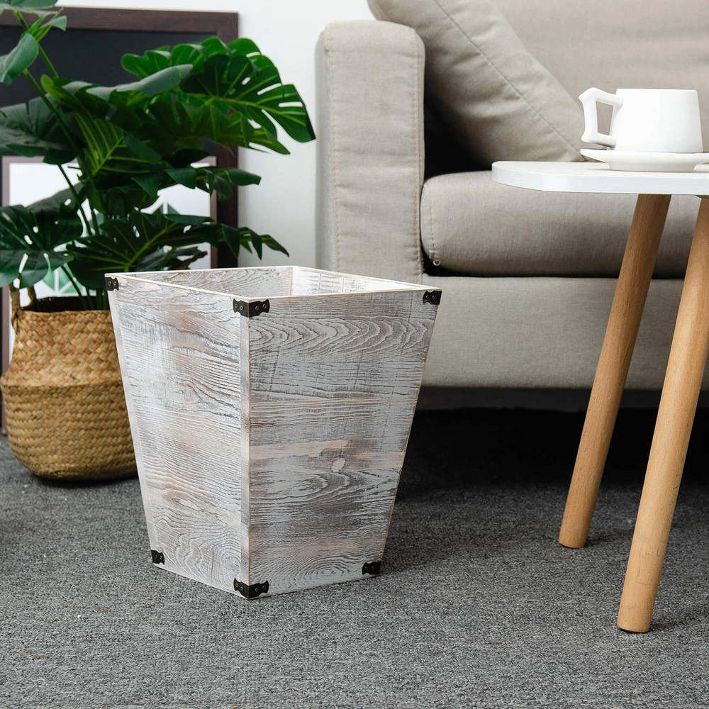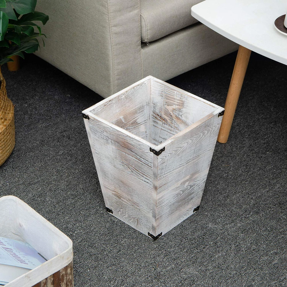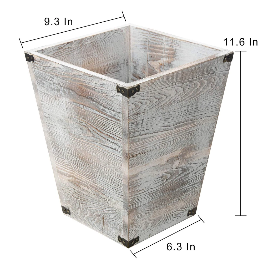 Rustic Whitewashed Torched Wood Square Waste Basket Recycle Bin Trash Can Decora