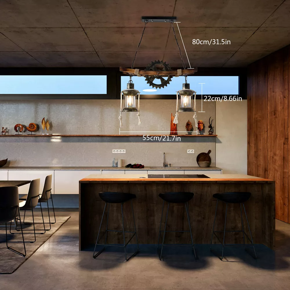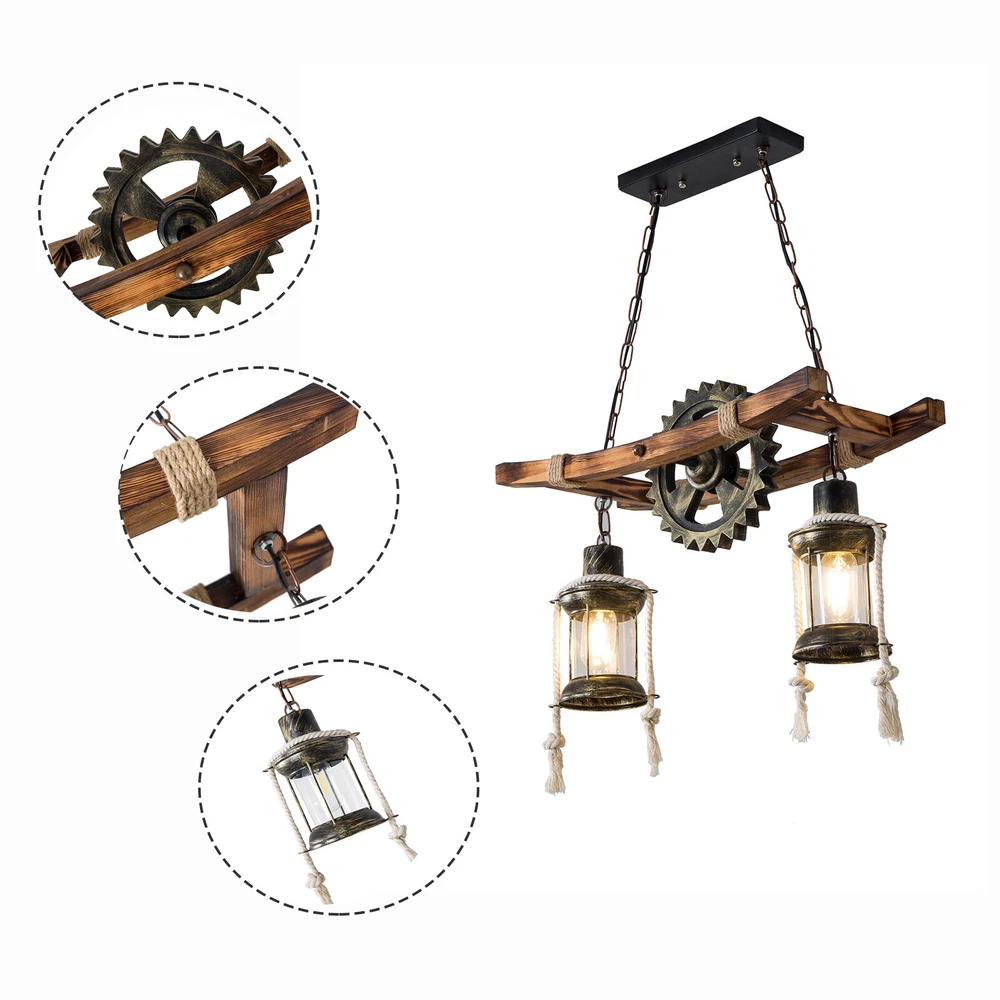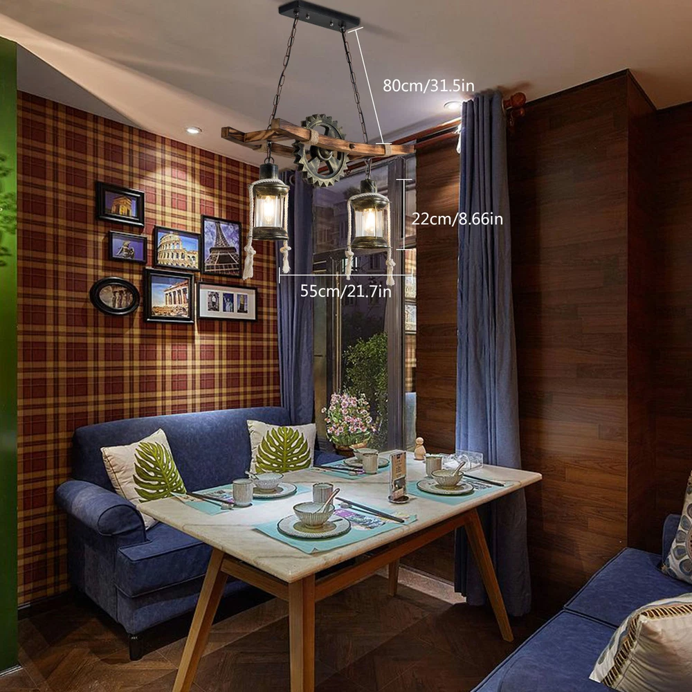 Rustic Wood Chandelier Farmhouse Loft Retro Pendant Light Ceiling Fixture Lamp Retro Pendant Light Industrial Loft bar Hanging Light Creative Personality Wood and Metal Living Room Pendant Lamp Height Adjustable Industrial Hanging Lamp for Dining Room Living Room (Two Heads) Features: 1. the Unique Gear Design Gives You a Completely New Visual Experience. the Combination of Solid Wood and Iron, Antioxidant and Anti-corrosion. Place Different Lightbulbs As Needed. Create a Retro and Romantic Atmosphere. Not Just Lighting, but Also Decorating Your Home. 2.the Lamp Works Well When Used with Incandescent or Led Bulbs with Standard E26 Bases.please Note: Incandescent Bulbs Are Not Included. 3.Suitable for Rooms: Living Room, Dining Room, Bedroom, Kitchen, Dining Room, Hall, Balcony, bar, Cafe, Warehouse, Country House, Study, Basement and Other Indoor Lighting. Specifications Category:chandeliers Usage:indoor Lighting,Outdoor Lighting,Hallway Shade Shape:cylinder Dimensions/Fixture Width: 21" (55 Cm) Bulb Type:led/Incandescent/Flourescent Bulb Base:e26 Number of Lights:2 Lights Wattage per Bulb:28-60w Shade Material:glass Shade Color:clear Glass Treatment:clear Number of Bulbs:2 Fixture Height(Including Chain):39" (100 Cm) Note: Bulb Not Included Package: 1* Ceiling Light Payment Delivery details Terms of sales About us Contact us Payment We accept ebay payment 。 Fees such as import duties, taxes are not included in the item price or shipping costs. These charges are the buyer's responsibility. Delivery details Shipping: 2-9 working days to: USA Terms of sales We maintain high standards of excellence and strive for hundred percent customer satisfaction. Feedback is very important to us. We hope that you contact us immediately before you give neutral or negative feedback, so that we can address your concerns. It is impossible to address issues if we do not know about them! About us Your satis faction is our ultimate goal. We work hard to earn your trust and future business. Our certified technicians have tested each item before shipping. The unit comes with 1 year limited warranty on all manufacturing defects. a) If you receive a defective item, you may return it or ask for a discount. Please contact us within 14 days after you receive the package. b) What you returned must be intact and in its original packaging as re? u. Customer is responsible for shipping costs of the returned item. c) We will cover the cost of shipping back t with the shipping rate indicated in the registration page. We will send you a new unit or refund the full payment you paid. Thank you. Contact us Business Hour Business Hour: Monday To Friday: 8:30 AM to 5:00 PM (Beijing China time) Due to time zones, our reply to your questions may not be immediately. But within above working time, we will reply your email within 24 hours. If it's non-workdays, please kindly be patient and wait till Monday. Please contact us with ebay message. Please feel free to contact us if you have any questions. Monday To Friday: 8:30 AM to 5:00 PM (Beijing China time) Due to time zones, our reply to your questions may not be immediately. But within above working time, we will reply your email within 24 hours. If it's non-workdays, please kindly be patient and wait till Monday. Please contact us with ebay message. Please feel free to contact us if you have any questions. Number of Settings Ceiling Fixtures Light Color Ceiling Fixtures Power Source Ceiling Fixtures Color Ceiling Fixtures MPN Does not apply Installation Area Ceiling Fixtures Department Adult Control Style Ceiling Fixtures Sensor Type Ceiling Fixtures Cord Color Ceiling Fixtures Manufacturer Ceiling Fixtures Theme Ceiling Fixtures Style Modern LED String/Strip Type Ceiling Fixtures Features Ceiling Fixtures Shade Shape Ceiling Fixtures Finish Ceiling Fixtures Lighting Technology Ceiling Fixtures Shipping Notice Can not ship to Puerto Rico,Alaska/Hawaii Type Chandelier Brand Unbranded Voltage 110V / 60Hz Material Iron, Wood Category Multi Light Pendant Uses indoor lighting Item Height 39 inches (100 cm) Item Width 21 inches (55 cm) Number of Lights 2 Bulb Type LED / Incandescent / Fluorescent Bulb base E26 Whether to include bulbs do not include bulbs Power per bulb 28-60W Shade material glass Surface treatment black, wood Shade color black, transparent Glass processing transparent Room Bar, Hallway, Kitchen, Cafe, Restaurant Energy Star A+ EC Range A - G