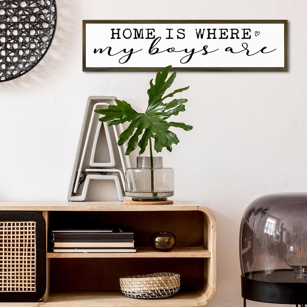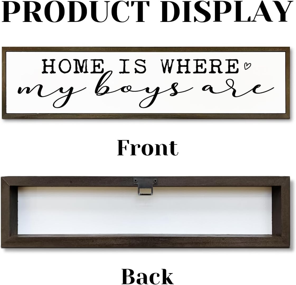 Store New Arrivals Add to Favorite View Feedback Contact Fast deliveries to the customer's home Quality customer service John Make the customers happy! Rustic Wood Sign, Home Is Where My Boys Are Sign, Decorative Wooden Wall Plaque, Boy Mom Home Decor, Living Room Decor, Mother'S Day Gift for Mom from Son 17.8X4X1.18 Inches Description ❤Size: 45x10x3cm (17.8x4x1.2 inches), proper size for you to decorate, won't take up too much space. ❤Premium Quality: Our wood box sign is made of high-quality wood material, which is beautiful, strong, durable, and not easy to fade. It is ideal for the decoration for different occasions. ❤Aesthetic Sense of Design: This exquisite wooden box is in high-definition UV printing technique, with emotional text and beautiful graphics, perfect for gifting and indoor use. It can be placed anywhere for people to enjoy and feel happy. ❤Widely Used: This rustic wooden plaque sign can be hung on the wall or freely stand on the shelf and desktop. It is an ideal for home office desktops, bathroom shelves, living rooms, bedrooms, etc. ❤Great Gift: This rustic ornament is a great gift for Valentine's Day, Christmas, birthdays. It can not only be given to family, friends, colleagues, etc., but also as a beautiful gift for yourself, and it is also a good choice for housewarming gifts, wedding souvenirs, etc. Dimensions:45x10x3cm (17.8x4x1.2 inches) Material: made of quality pine wood; with emotional text and beautiful graphics. This is looking for uniquely designed gifts for you and your family or friends, it is the best gift for your family. Item model number YZP-YZ-412 Color color Product Dimensions 17.8"L x 4"W Item Weight 0.56 Pounds Shape Rectangular ABOUT US We offer the best prices around on high quality products. Our E-store includes media such as books, movies, music and games while offering electronics, toys, sporting apparel, clothing, tools, general home, garden items and more. SHIPPING We are always working hard to ensure your package arrives as soon as possible. Please understand that some factors like weather, high postal traffic, and the performance of shipping companies are outside of our control. We offer free shipping to the lower 48 states and ship within 2 business days of payment, usually sooner. We do not accept P.O. Boxes. Please provide a physical address. For shipping outside of the continental USA, we only use eBay's Global Shipping Program. The item is shipped to KY and then sent to the rest of the world. International customers are responsible for all duties and taxes. Continue to 'check out' to calculate costs for shipping the item to your country. Messages regarding eBay's Global Shipping Program MUST be directed at eBay EXCLUSIVELY. RETURNS We offer a 30-Day Return Policy on items in which you are not completely satisfied with. You have the option of a full-refund or an exchange of the item. No returns are available on items shipped outside of the USA PAYMENT We accept PayPal. CONTACT US This page content is yet to come Please ad us to your favorite seller and visit again later Thank You CUSTOMER SATISFACTION We try our very best to make sure every customer is completely satisfied. If there's a problem, message us! We're happy to help. WE ACCEPT