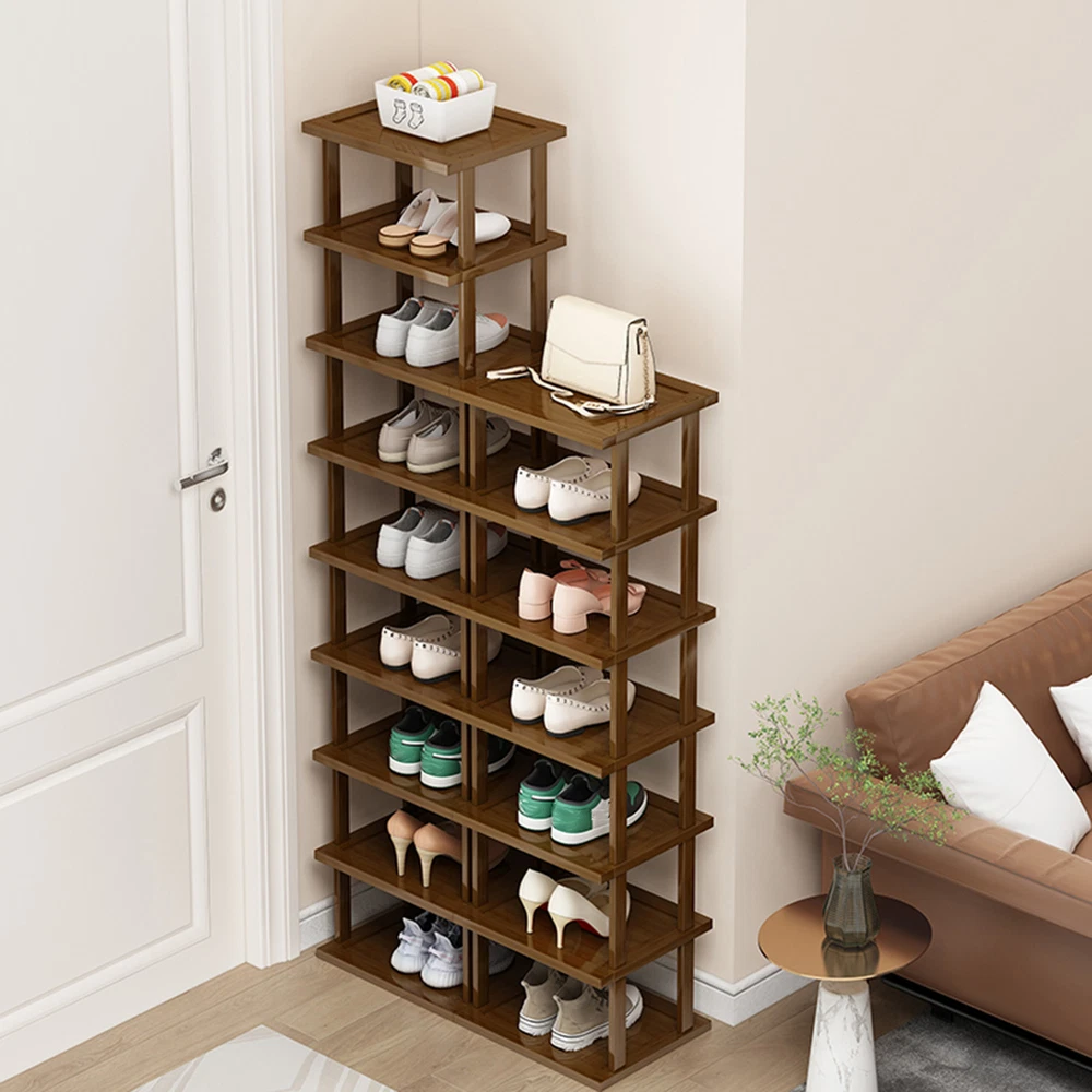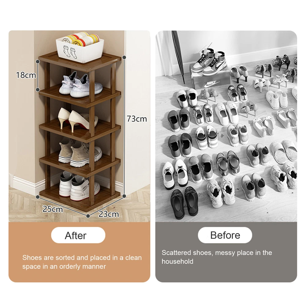 This rustic organizer is a total game-changer! It fits perfectly in that awkward corner space and keeps all my shoes neatly arranged. The wood looks beautiful and it was super easy to assemble. Finally solved my clutter problem!