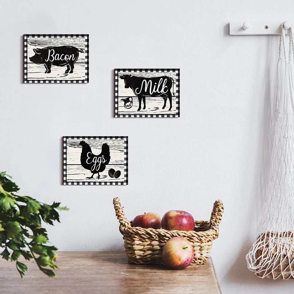 Store New Arrivals Add to Favorite View Feedback Contact Jetec 3 Pieces Farmhouse Kitchen Decor Wooden Pig Cow Chicken Signs Rustic Buffalo Plaid Wall Art Farm Animal Plaque for Kitchen Home Wall Decorations, 7.9 X 5.9 Inch Description Item model number Jetec-Sign-1287 Product Dimensions 7.9 x 5.9 x 0.04 inches Country of Origin China Item Weight 7.6 ounces Size 7.9 x 5.9 Inch Manufacturer Jetec What you will receive: you will receive 3 pieces of farmhouse kitchen signs, including cow, rooster and pig decors in 7.9 x 5.9 inch; Rustic wooden signs can help you create a warm atmosphere for your home Quality material: the wooden wall decors are made of quality wood that is close to nature, no bad smell and not easy to get corroded or broken, you can keep them for a long time as an exquisite home wall decor, making your home look cute and funny Easy to use: these farmhouse kitchen decors have hooks on the back, so you can stand them on the table or hang them on the wall; You can choose how to place them according to your needs, which is very convenient Cute pattern: the wooden signs are designed with vivid cow, pig and rooster patterns, cute and rustic, which can bring you beautiful wooden wall decoration effects in kitchen and farmhouse Nice gifts: in addition to decorating your home, the rustic wooden wall signs can also be applied as chic gifts to friends and family around you, which will be loved very much by the gift receiver Product Description The appropriate size makes the product more refined, and it will be better integrated into the scene, not too abrupt. It's not very thick, so it can be more close to the wall and easier to lean on other objects for decoration. The product comes with a hook on the back, which is more convenient to hang on the wall. We use good quality wood and safe paint. It not only ensures the beauty of products, but also ensures the safety of use. ABOUT US We offer the best prices around on high quality products. Our E-store includes media such as books, movies, music and games while offering electronics, toys, sporting apparel, clothing, tools, general home, garden items and more. SHIPPING We are always working hard to ensure your package arrives as soon as possible. Please understand that some factors like weather, high postal traffic, and the performance of shipping companies are outside of our control. We offer free shipping to the lower 48 states and ship within 2 business days of payment, usually sooner. We do not accept P.O. Boxes. Please provide a physical address. RETURNS We offer a 30-Day Return Policy on items which you are not completely satisfied with. You have the option for a full-refund or an exchange of the item. No returns are available on items shipped outside of the USA. PAYMENT We accept PayPal. CONTACT US This page content is yet to come Please ad us to your favorite seller and visit again later Thank You CUSTOMER SATISFACTION We try our very best to make sure every customer is completely satisfied. If there's a problem, message us! We're happy to help.