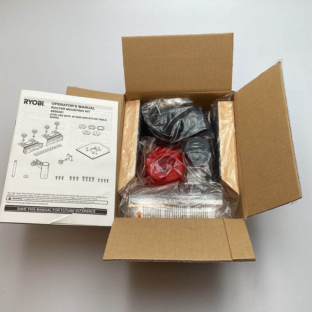 Condition Notes This Ryobi 4950301 Router Mounting Kit is in new, flawless condition. The original box was factory sealed upon acquisition but was opened solely for photographic purposes. The outer packaging exhibits some minor wear and a few bends, as detailed in the images. Please confirm compatibility with your specific needs prior to purchase. Detailed Description This Ryobi 4950301 Router Mounting Kit is designed to enhance the functionality of Ryobi BT3000 and BT3100 table saws. It provides a secure and stable platform for various router applications, ensuring precision and ease of use. The kit includes all necessary components for a seamless installation, allowing users to expand their woodworking capabilities. This essential accessory is perfect for DIY enthusiasts and professional woodworkers alike. What's Included The kit includes all components necessary for mounting a router to compatible Ryobi table saws. This comprises various mounting hardware, brackets, and an operator's manual for detailed instructions. All parts are securely packaged in their original plastic bags, ensuring they are pristine and ready for installation. Key Features • Designed for Ryobi BT3000 & BT3100 Table Saws • Enhances Router Stability and Precision • Includes All Necessary Mounting Hardware • New, Unused Components • Easy Installation with Included Manual Applications This router mounting kit is specifically designed for integrating a router with Ryobi BT3000 and BT3100 table saws. It enables users to perform precise routing tasks such as edge profiling, dado cuts, and joinery directly on their table saw setup. Ideal for woodworking projects, cabinet making, and custom furniture fabrication, it expands the versatility of existing workshop tools. 📷 Photography Notes I never use stock pictures; I always take pictures of the exact item(s) that I am selling. So what you see in my pictures is exactly what you would receive if you make the purchase. 📦 RETURN POLICY Most returns are accepted within 30 days — buyer pays return shipping. Items must be returned in the same condition, with all packaging, accessories, and serial numbers (shown clearly in photos). Return eligibility depends on the listing: → "30-Day Returns" or "No Returns" will be shown. Forced returns on "No Returns" listings may qualify for a partial refund if returned incomplete. 🚫 No returns on: • Personal care items • Digital/software goods • Opened sealed items • Electronics with mismatched serials ℹ️ PRODUCT INFORMATION Item details were auto-filled using eBay's catalog (via UPC) and personally verified by me. Optional item specifics were enhanced with AI to improve clarity and precision. Based on the most reliable data available anywhere, AI was used to compile this listing with exceptional accuracy. If there's ever a mismatch, it's due to limited data — not human error. Product Identifiers — Brand: Ryobi — MPN: 4950301 — UPC: Not Applicable