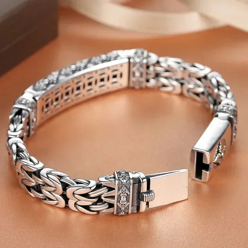 S925 60.5g Silver Men Retro Cross Watch Chain Bracelet