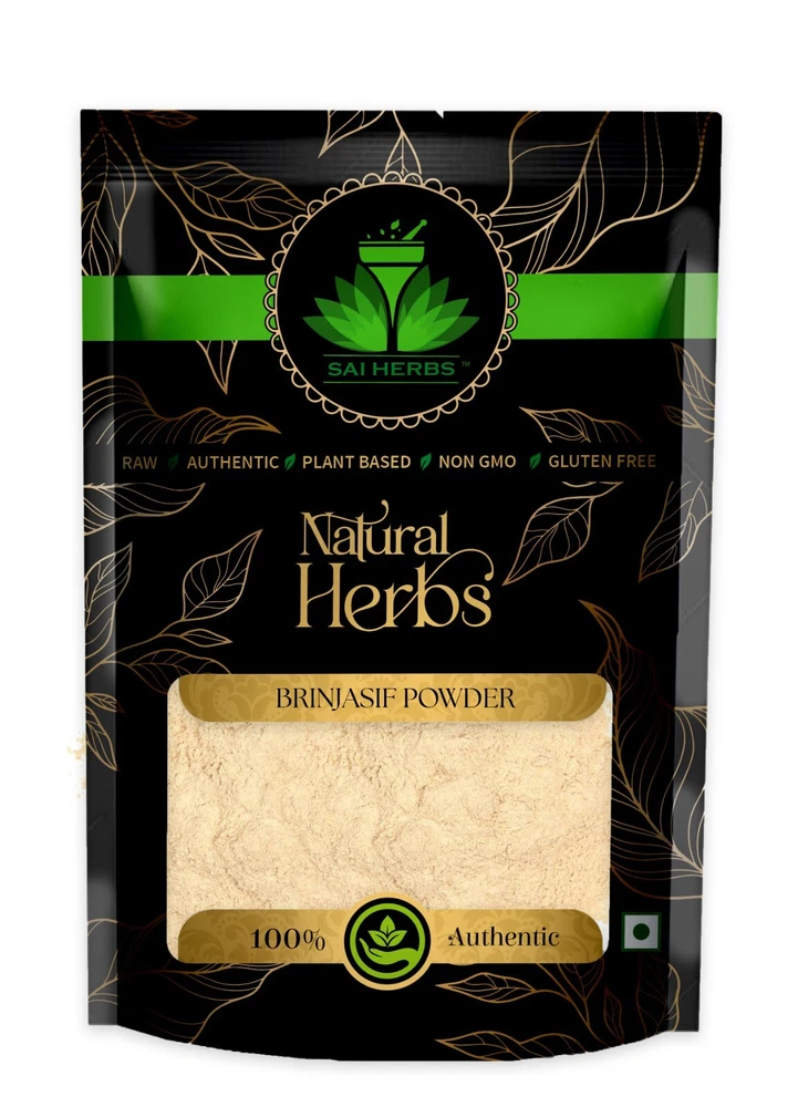 SAI HERBS Brinjasif Powder – A Natural Herbal Solution for Health and Wellness SAI HERBS Brinjasif Powder, made from the carefully selected Eclipta alba plant, also known as Bhringraj, is a treasured herb in traditional Ayurvedic medicine. Revered for its wide-ranging benefits, Brinjasif Powder is known to promote overall health and vitality. Whether you’re seeking to support your hair health, improve digestion, or boost your immunity, this 100% natural and pure herbal powder is an excellent addition to your wellness routine. Free from additives and chemicals, SAI HERBS Brinjasif Powder is carefully processed to retain its natural potency and effectiveness. Key Benefits of SAI HERBS Brinjasif Powder Promotes Hair Health Brinjasif Powder is often called the "King of Hair" in Ayurveda, as it is highly beneficial for promoting hair growth and reducing hair fall. It nourishes the scalp, strengthens hair roots, and helps maintain natural hair color, reducing premature graying. Regular use can result in lustrous, healthy, and strong hair. Supports Liver Health This powerful herb is known for its hepatoprotective properties, helping to detoxify and protect the liver. Brinjasif Powder aids in flushing out toxins, supporting liver function, and promoting overall detoxification, leading to improved energy levels and better overall health. Boosts Immunity Rich in antioxidants and essential nutrients, Brinjasif Powder strengthens the immune system. It helps the body combat free radicals, reduce oxidative stress, and improve resilience against infections and diseases, ensuring robust health. Enhances Skin Health With its anti-inflammatory and antibacterial properties, Brinjasif Powder can help in achieving clear, healthy skin. It reduces skin inflammation, soothes irritation, and helps in managing conditions like acne, blemishes, and rashes, leaving you with a radiant complexion. Improves Digestion Brinjasif Powder supports the digestive system by stimulating the production of digestive enzymes and reducing issues like bloating, constipation, and indigestion. It helps regulate digestion and ensures better absorption of nutrients. Reduces Stress and Promotes Mental Clarity Brinjasif Powder is valued for its calming properties. It helps in reducing stress, anxiety, and mental fatigue, promoting relaxation and better mental clarity. This herb is often used to support cognitive function and memory enhancement. Natural Anti-Inflammatory Properties Brinjasif Powder is a natural anti-inflammatory agent that helps reduce inflammation in the body. It is especially useful for individuals dealing with chronic conditions such as arthritis or joint pain, as it alleviates discomfort and promotes mobility. Why Choose SAI HERBS Brinjasif Powder? 100% Pure and Natural Our Brinjasif Powder is made from the finest-quality Eclipta alba plants, ensuring the highest potency and purity. It is free from any artificial additives, chemicals, or preservatives, offering you a clean and effective product. Sustainably Sourced We are committed to environmentally responsible practices. Our Brinjasif Powder is sourced from trusted farms that follow sustainable agricultural methods, helping you care for your health while supporting the environment. High Potency and Effectiveness Carefully processed to preserve its active compounds, SAI HERBS Brinjasif Powder delivers maximum therapeutic benefits. Its high potency ensures optimal results with consistent use. Strict Quality Control Each batch of SAI HERBS Brinjasif Powder undergoes rigorous quality checks to ensure it meets the highest standards of safety, purity, and effectiveness. You can trust that you’re getting the best with every purchase. Eco-Friendly Packaging Our Brinjasif Powder is packaged in resealable, eco-friendly bags to preserve freshness while minimizing environmental impact. This reflects our commitment to sustainability and quality. Affordable and Accessible SAI HERBS is dedicated to providing premium herbal products at affordable prices. Our Brinjasif Powder offers an effective and natural solution for improving your health without straining your budget. A Holistic Approach to Better Health SAI HERBS Brinjasif Powder is a versatile herbal supplement designed to promote overall health and vitality. Whether you’re looking to support your hair and skin health, enhance your liver function, or boost your immunity, this herbal powder is a perfect choice. Choose SAI HERBS Brinjasif Powder – Your natural path to a healthier and more balanced lifestyle. Experience the transformative benefits of Ayurveda with SAI HERBS Brinjasif Powder – Trusted for generations, crafted for you.