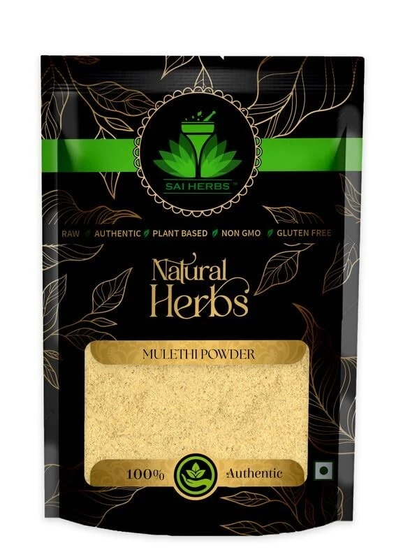 SAI HERBS Mulethi Powder – Pure & Natural SAI HERBS Mulethi Powder is made from high-quality Glycyrrhiza glabra (Licorice) root, renowned for its numerous health benefits and rich history in Ayurvedic medicine. Mulethi, commonly known as Licorice, is a revered herb used for centuries to enhance overall well-being. With its wide range of medicinal properties, SAI HERBS Mulethi Powder is an ideal addition to your daily routine for supporting respiratory health, boosting immunity, and promoting digestive wellness. Key Benefits Supports Respiratory Health : Mulethi is known for its ability to soothe the throat, reduce coughing, and help in managing conditions like bronchitis and asthma. It acts as an expectorant, clearing the lungs and airways. Boosts Immunity : Rich in antioxidants and anti-inflammatory compounds, Mulethi helps strengthen the immune system, preventing infections and promoting overall health. Promotes Digestive Health : It aids digestion, alleviates bloating, and supports the healthy functioning of the gastrointestinal system. Mulethi also helps manage acidity and ulcers. Enhances Skin Health : Mulethi is often used for its skin-soothing properties. It helps to reduce pigmentation, acne, and other skin concerns, promoting a clearer and healthier complexion. Stress Relief : Known for its adaptogenic properties, Mulethi helps the body cope with stress and fatigue, promoting relaxation and mental clarity. Supports Liver Function : Mulethi has detoxifying properties, helping cleanse the liver and supporting its overall function. Why Choose SAI HERBS Mulethi Powder? At SAI HERBS, we are committed to providing the purest, most effective natural products. Our Mulethi Powder is carefully sourced to ensure you get the highest quality product for your health and wellness needs. 100% Pure & Natural : Free from artificial additives, preservatives, and chemicals, SAI HERBS Mulethi Powder is completely natural and safe for daily use. High-Quality Sourcing : Sourced from trusted suppliers, ensuring the finest Mulethi roots for maximum potency and effectiveness. Finely Ground : The powder is processed to a fine consistency for easy consumption and seamless incorporation into your diet. Rigorous Quality Testing : Each batch undergoes stringent quality checks for purity and potency, ensuring you receive the best possible product every time. Sustainably Sourced : We prioritize eco-friendly and sustainable practices, so you can feel good about supporting both your health and the planet. How to Use For Internal Use : Mix 1 teaspoon of Mulethi Powder in warm water, milk, or herbal tea. Consume once or twice daily, or as directed by a healthcare professional. For Skin Care : Create a paste by mixing Mulethi Powder with water or honey, and apply it to the skin for its soothing and healing properties. For Cough Relief : Mulethi Powder can also be mixed with honey or warm water for its soothing effect on the throat and respiratory system. The SAI HERBS Promise We believe in the power of nature to enhance your health. By choosing SAI HERBS Mulethi Powder, you are embracing the healing benefits of this ancient herb and investing in a healthier, more vibrant lifestyle. Our commitment to purity and sustainability ensures you receive the best that nature has to offer. Revitalize Your Health Naturally Incorporate SAI HERBS Mulethi Powder into your daily routine to experience its numerous benefits for respiratory health, immunity, digestion, and more. Let this powerful Ayurvedic herb support your journey toward optimal health and wellness. Choose SAI HERBS for the finest, natural products that support your well-being with the healing power of nature.
