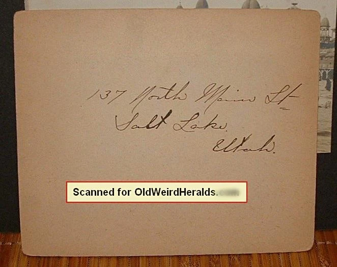 SALT LAKE UTAH Antique CABINET PHOTO LOT: 1 LOT with 6 Different Vintage Cabinet Photos - Not Dated but Pre-1910 - 6 Utah Images - I believe these could be by Famous Railroad & Mormon Photographer C.R. Savage - 110+ Years Old & in Nice Condition - SIZE(s): 5 mounted Photos are est. 7" x 9" total & 1 is est. 5" x 6" - SEE details, B&W Single weight, Silver Gelatin non-glossy photos, Mounts in nice shape - SALT LAKE UTAH, SALT PALACE At NIGHT, SALTAIR BATHING, BRIGHAM YOUNG'S GRAVE, AMELIA PALACE, TEMPLE SQUARE - Very Good+ Condition or Better: NICE, Have some wear, clean, flat, No creases, No image tears, No tack Holes, Has corner (mount) & edge wear & few corner breaks, dings, dents & or wrinkles, No stains, Not brittle, has some silvering, Has Age yellowing, Sold As-Is - SEE ALL IMAGES. SALT LAKE CITY UTAH CABINET PHOTO LOT (6pcs) Pre 1910 C.R SAVAGE, Mormon VINTAGE SALT LAKE CITY UTAH CABINET PHOTO LOT (6pcs) Pre 1910 C.R SAVAGE, Mormon VINTAGE Click images to enlarge Description SALT LAKE UTAH Pre 1910 ANTIQUE CABINET PHOTO LOT : You are Bidding on 1 LOT with 6 Different Original Vintage Cabinet Photos - Not Dated but Pre-1910 - 6 Utah Images - I believe these could be by Famous Railroad & Mormon Photographer C.R. Savage - Includes: Salt Lake Utah, Salt Palace At Night, Saltair Bathing, Brigham Young's Grave, Amelia Palace, Temple Square - Silver Gelatin non-glossy photos, Mounts are in nice shape - These are over 110+ Years Old, used & in Nice Condition - Ready to Display. 6 CABINET PHOTOS INCLUDE: #1) "SALT LAKE, UTAH: Unidentified Building at "137 North Main St., Salt Lake, Utah" - Elite Capitol Hill Area Home, near the Historical McCune Mansion, Daytime scene, backside has handwritten Street Address of "137 North Main St., Salt Lake, Utah" - Total Mount Size: est. 5" x 6", Photo Size is: est. 3-1/4" x 4-1/2". #2) "SALT PALACE At NIGHT": Night Photo of the Original Salt Palace with Lights on, unfortunately this building burned down in 1910 - Total Mount Size: est. 7" x 9", Photo Size is: est. 4" x 6-1/8", photo has silvering. #3) "SALTAIR - BATHING": Daytime Photo with ALL MEN Bathers at the Great Salt Lake, Floating & swimming at the Popular SALTAIR Resort, The Fabulous SALTAIR Palace in the background - The Saltair Palace was destroyed in a fire in 1925 - Total Mount Size: est. 7" x 9", Photo Size is: est. 4" x 6-1/8", photo has some silvering. #4) "BRIGHAM YOUNG'S GRAVE": Daytime Photo with 2 Men peering over the wrought iron fencing.. at the Cemetary Grave of Mormon Leader, Brigham Young - Total Mount Size: est. 7" x 9", Photo Size is: est. 4-1/8" x 6-1/8", photo has some silvering. #5) "AMELIA PALACE", UTAH: Daytime Photo of the "Amelia Palace" also known as the "Gardo House", a Great Historic Mansion originally built for Brigham Young, (Looks like something the "Addams Family" lived in), William H. Folsom, one of the designers of the Gardo House, was the father of Amelia Folsom Young, for whom the house was nicknamed "Amelia's Palace." This Mansion was Demolished in 1921 - Total Mount Size: est. 7" x 9", Photo Size is: est. 4-1/8" x 6-1/8", photo has some silvering - Upper left mount corner is gone. #6) "TEMPLE SQUARE": Daytime Photo of the Mormon Temple & Entire Block & area around it, shows a tiny Horse Drawn Buggy or Wagon at right side of blook at street curb - Total Mount Size: est. 7" x 9", Photo Size is: est. 4" x 6", has some silvering, upper left corner has damage (backside), NOTE : Photo title is in silver ink & photo also has some small silver Ink marks at top sky area. SIZE: 5 mounted Photos are est. 7" x 9" total and 1 is est. 5" x 6" - SEE Descriptions (above) for actual sizes, Vintage B&W Single weight, Silver Gelatin non-glossy photos, Mounts are in nice shape - 100% Authentic - Not signed, No stamps or identifying marks - These came from a Estate Sale of a well to-do family who lived in Portland Oregon & traveled alot, Pre 1910 & have been stored away for over 110+ years - the items you see are the ones you will recieve - Photos are Sold As-Is - SEE IMAGES for Sharpness & Defects. Very Good+ Condition or Better: Nice, Have some wear, clean, flat, No creases, No image tears, No tack Holes, Has corner (mount) & edge wear & few corner breaks, dings, dents & or wrinkles, No main stains, Not brittle, fading, has some silvering, Has Age yellowing, Sold As-Is - SEE IMAGES - A Nice Addition to Any Collection Or Give It as a Gift! NOTE: These are Vintage Items & NOT newer Copies or Reproductions! Payment USA BUYERS ONLY : Accepted Methods of Payment: Paypal.com, Visa, Mastercard, Discover, American Express, Google Pay (G Pay), and Other Ebay accepted forms of Payment. All items are Shipped Boxed, Fully Insured & Packed well to prevent damage in shipping. I am sorry we do not ship worldwide at this time, Please contact me for possible exceptions. All Questions Gladly Answered. Shipping All Items are sent with the US Postal Service, via USPS GROUND ADVANTAGE (formerly 1st Class Service), Fully Insured, with Delivery Confirmation. Always "GORILLA - PROOF" Packaging ... Every item is Bagged & Shipped Boxed for Protection Against damage during shipping. About Us In Business Since 1970 ... Selling Quality Vintage Collectibles on Ebay since 1997. See My Great Feedback of Happy Customers. Buy with Confidence! Contact Us E-mail Me Anytime with Your Detailed Want-List. Let me know & I can List items on Ebay for your viewing . I have a Huge Inventory of items for sale, Circa 1900-1985 that are Not online. Images sell! Get Supersized Images & Free Image Hosting Create your brand with Auctiva's Customizable Templates. Attention Sellers - Get Templates Image Hosting, Scheduling at Auctiva.com. Track Page Views With Auctiva's Counter