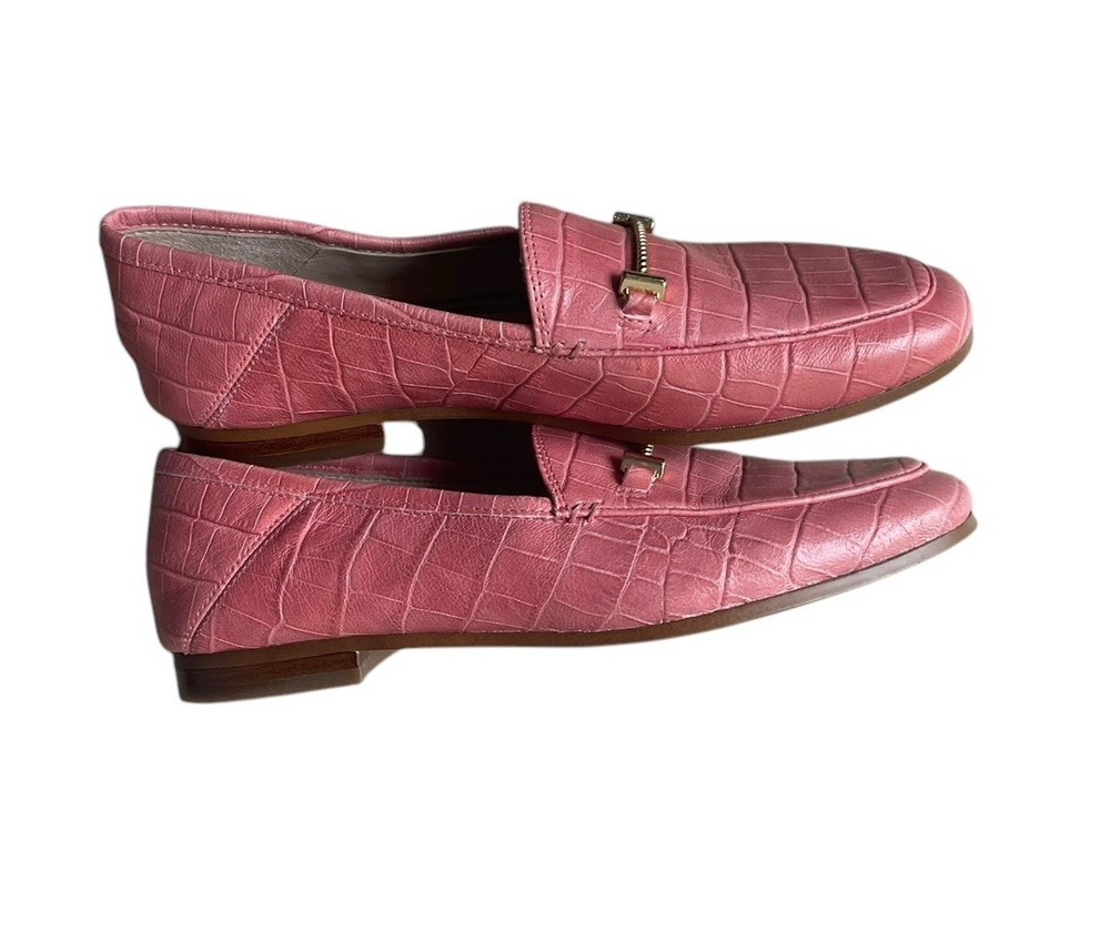 SAM EDELMAN Loraine Pink Leather Croc Embossed Loafers Size 5.5. Condition is Pre-owned. Shipped with USPS First Class.