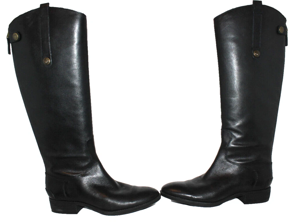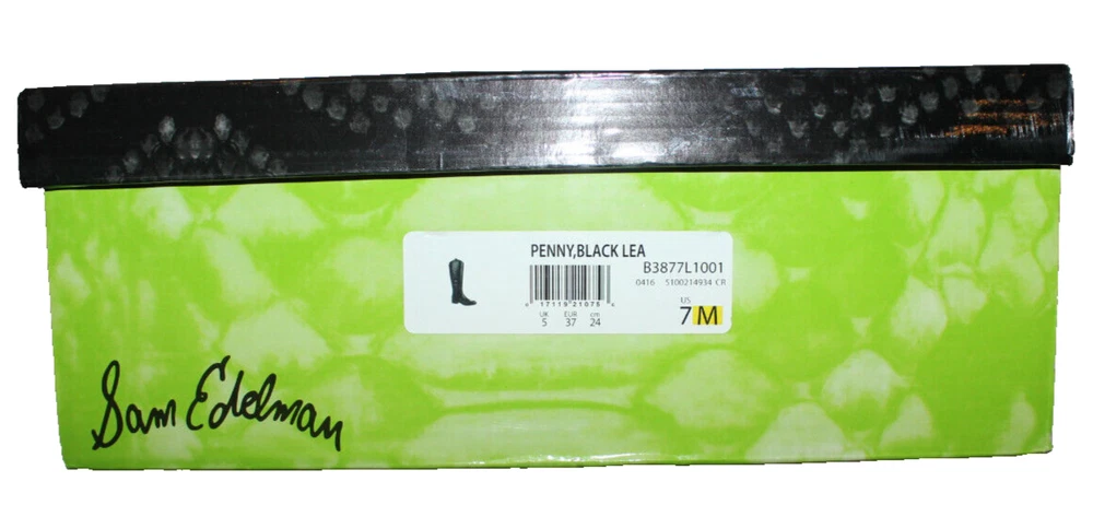 SAM EDELMAN Penny Black Leather Boots Model #: B3877L1001 Size: Womans 7 Medium Includes Original Box and packaging Condition: EXCELLENT used once. Original Retail Price was $139.99 These boots were literally worn only one time but were to tight and they could not be returned, so here they are on ebay in original box with maybe 4 hours of use one day in NYC. Pictures are ALL OF THE EXACT BOOTS YOU WILL RECEIVE and are HD so they can be expanded and you see just what you will get. I usually limit my sales to sporting goods but these are my wife's and I am selling them for her so here they are.