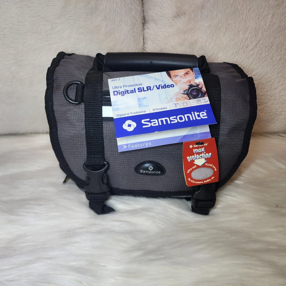 vintage Samsonite camera case is perfect for protecting your camera and accessories on the go. The case is made of durable nylon material and features a padded interior to keep your items safe. It also includes an accessory compartments for additional storage. The black color and universal compatibility make this case a great choice for any photographer or videographer. It weighs only 11 ounces and measures 9 inches in length and 4.5 inches in width, with an interior length of 9 inches and a height of 6 inches. With its affordable price and reliable quality, this Samsonite camera case is a must-have for any photography enthusiast.