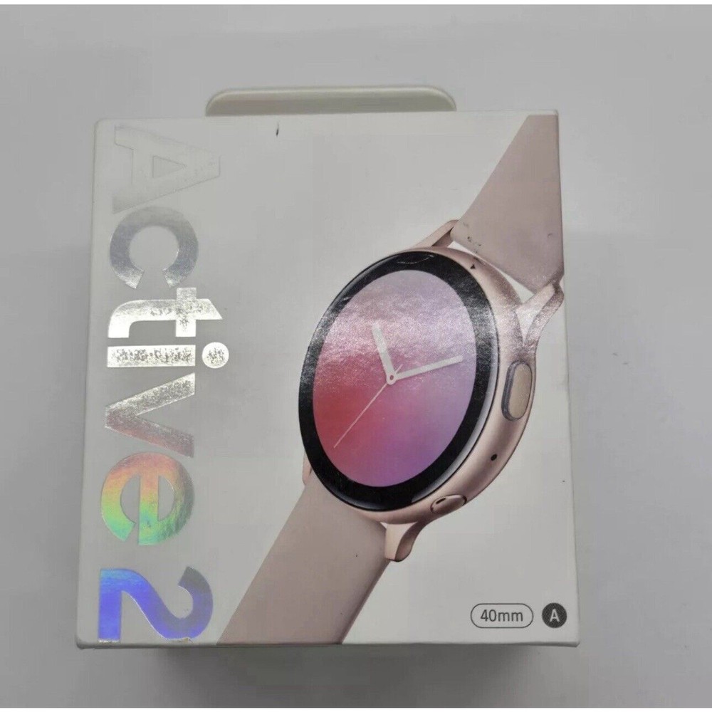 Stay active and stylish with the Samsung Galaxy Watch Active 2. This smartwatch features a sleek pink aluminum case and fluoroelastomer band for a comfortable fit. With 40 mm in case size, this watch is perfect for both iOS and Android operating systems. Track your fitness goals with the Samsung Health app and monitor your heart rate, sleep patterns, and more. The watch also has GPS capabilities, waterproofing, and wireless charging for added convenience. Store your favorite apps and music with ease, as this watch has 4 GB in storage capacity. Get yours now and stay connected on the go!