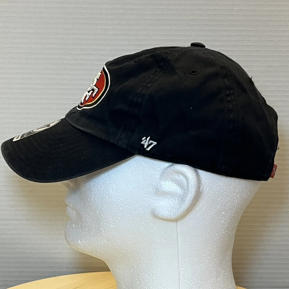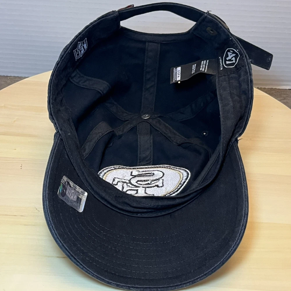 Show your love for the San Francisco 49ers with this officially licensed unisex adult cap from '47 Brand. The adjustable snapback design ensures a comfortable fit for all head sizes. This black cap features the team's logo prominently on the front and is perfect for game day or everyday wear. Made in China, this cap has a capacity of 8 oz and is a must-have for any NFL fan. Whether you're cheering on your favorite team during the regular season or just want to show off your team spirit, this cap is the perfect accessory. Get yours today and add it to your collection of sports memorabilia! Look at pictures for condition.