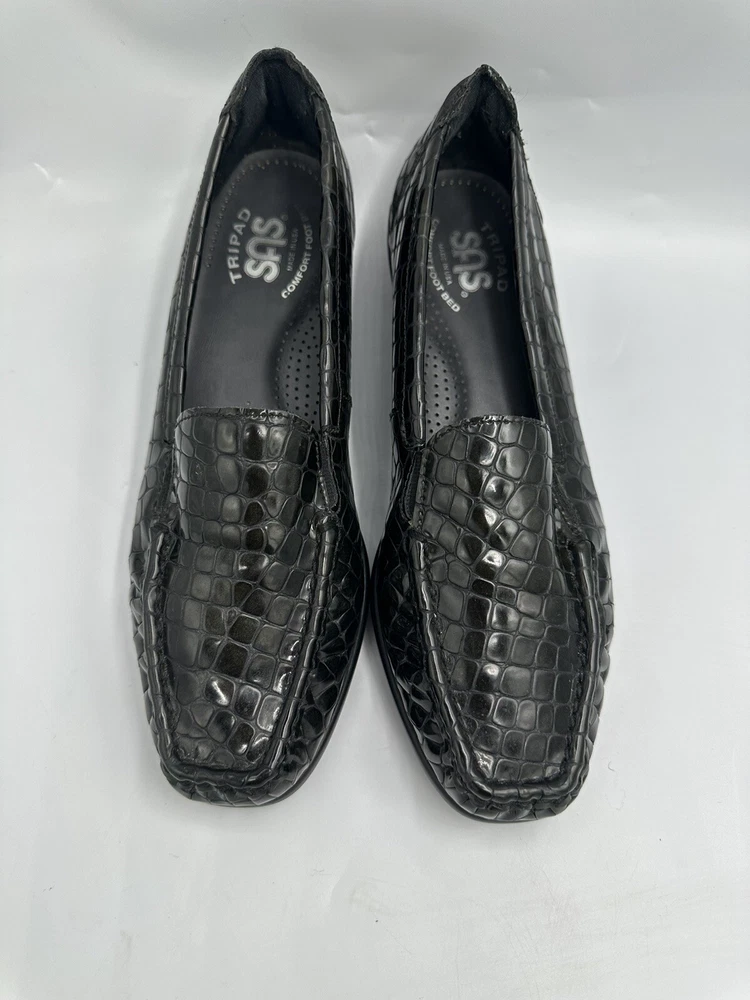 SAS Women’s Shoes Size 7 N Tripad Black Croc Patent Leather Loafer Comfort Bed