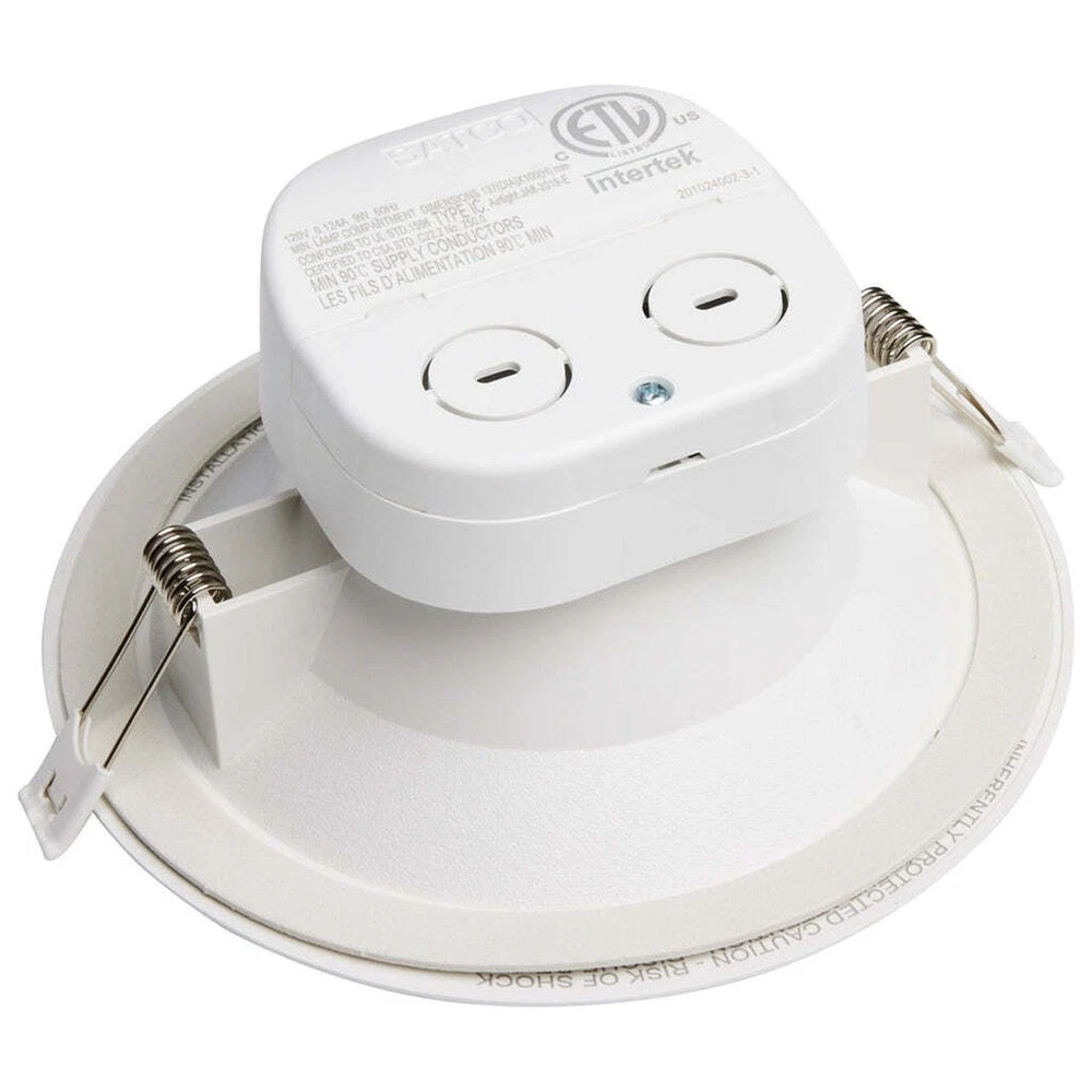 SATCO|NUVO's 9-watt, LED 5-6 inch, recessed downlight fixture is direct wired and offers warm white light with a 100 degree beam spread. This LED downlight is an energy efficient lighting solution for retail spaces, offices, and drop ceilings. Dimmable and long lasting, this fixture delivers 40,000 hours of exceptional illumination.