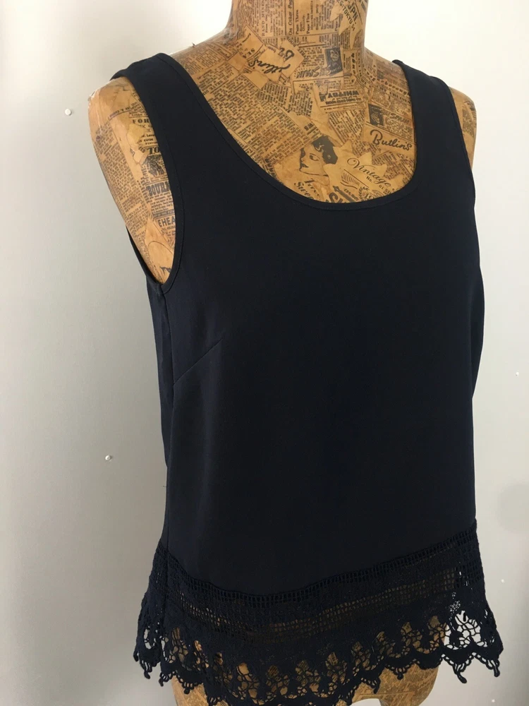 SAVIDA FRENCH NAVY VEST TANK TOP UK 8 light chiffon with crochet lace trim NEW without tags bought and unworn TRUE GARMENT SIZING GUIDE Different clothing manufacturers size charts vary considerably, in order to help you get the correct size first time we include images of our garments laid flat on a table and indicated measurements with a tape measure. This will include chest measurement with a width measurement across the pit to pit line and length from nape of neck under collar area to lower front hem . We recommend that you compare this with a similar style garment that fits you well. POSTAGE We dispatch promptly within one working day of sale and offer same day dispatch to orders placed before 10am. Postage is free of charge however we also a premium postage upgrade of Royal Mail express for an additional cost please select this option when placing your order at check out.