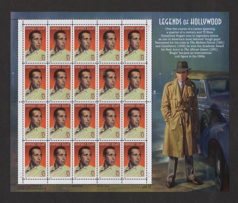 SCOTT #3152 Humphrey Bogart Legends of Hollywood. 32 Cent Mint Sheet of 20