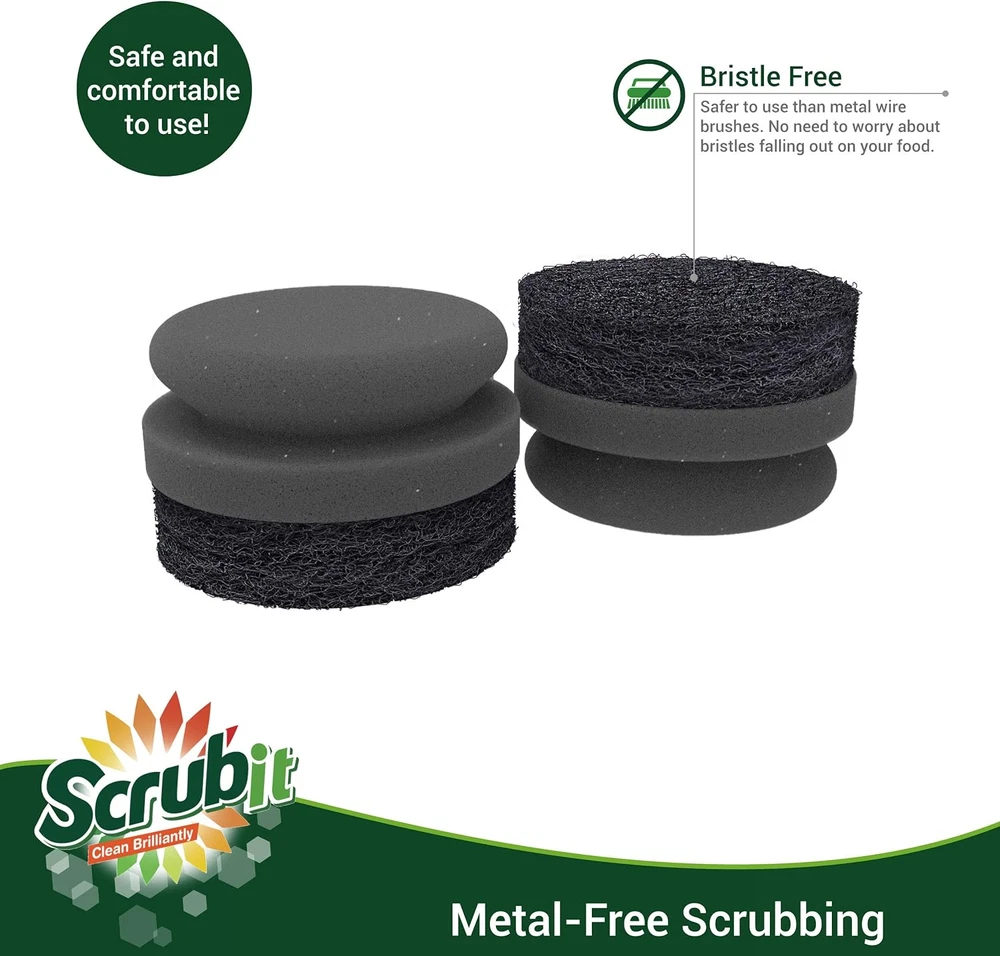 Bristle and Wire Free Cleaning: The Scrub-it grill grate brush will aggressively scrub off all burnt-on food and grease from every type of grate. You do not have to worry about metal bristles getting stuck on the grill and falling in your food. Keep yours and your families health clean. Comfortable and Tough Cleaner: With Scrub-it’s specially designed comfortable handle and rough scrubber pads, you can scrape off even the most stubborn of deposits, leaving you with a beautiful cooking surface. Heavy Duty Bbq Grill Brush: These grill brushes with their powerful fibers are tough enough to scrape and scour off the leftover gunk and grime from your past barbecue faster than ever, these wireless scrapers are suitable for use on all kinds of surfaces including stainless Steel, porcelain coated grills and cast iron skillets. Best Grill Accessory: Have you ever thought of buying yourself or as a gift the safest and most durable grill scraper? Well, you got it! With a Scrub-it premium and high-quality scouring pad combined with the finest sponge handle you could replace your old-fashioned so-called grill cleaning kit, just try this all-in-one barbeque tool. Product Description