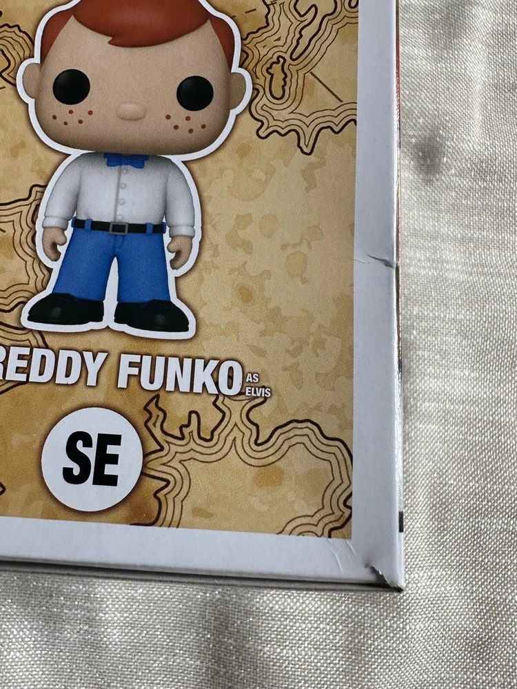 SDCC Comic Con Fundays Funtastic Freddy as Elvis Presley LE1000 Metallic Funko Please see pictures for detail. Damage to the lower left side of the box that you may not notice at first glance. Pop ships immediately in sort protector and carefully wrapped packaging Please message with any questions