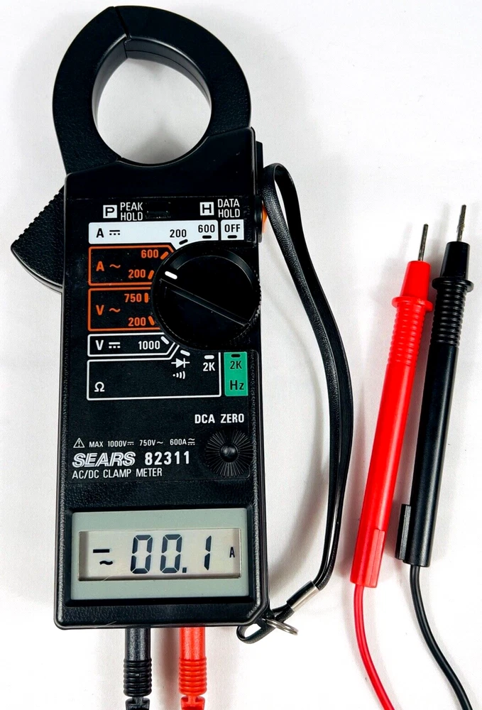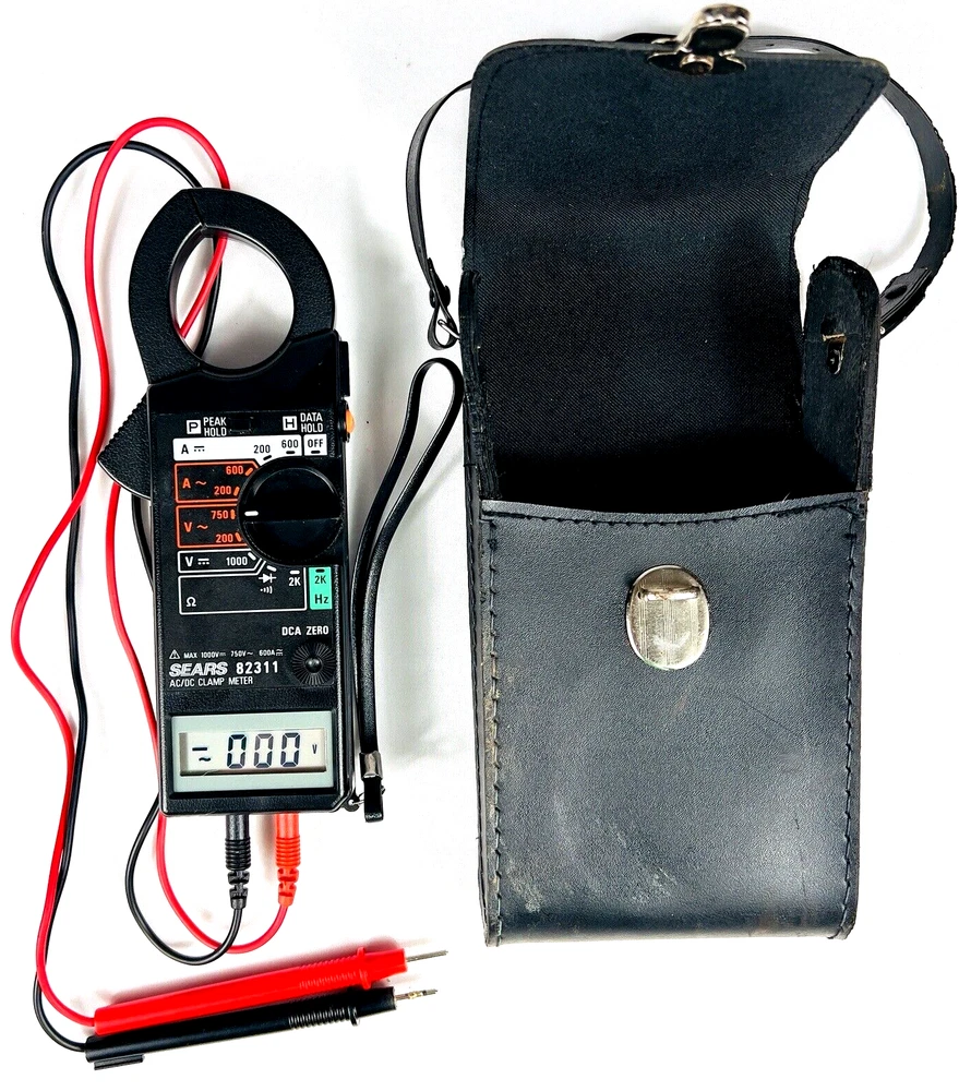 This AC/DC clamp meter from Sears is a reliable tool for measuring various electrical functions. With a frequency range of Hz, it can test for AC current, DC voltage, and transistor function. It also features a clamp function and a digital display. This handheld multimeter is ideal for business and industrial use, and it comes with a bag for easy storage and transportation. The unit type is a single unit, and it was manufactured in Taiwan. It has a serial number of 90522492.