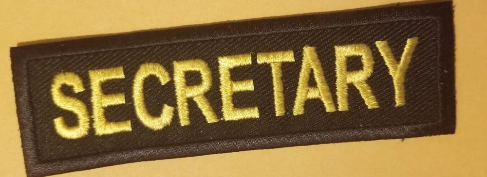 SECRETARY Club Officer Embroidered Patch Worldwide shipping gold/yellow
