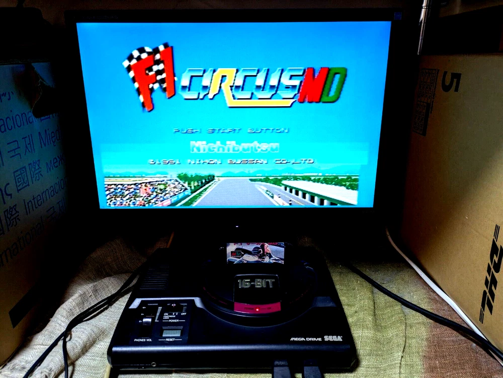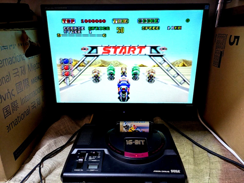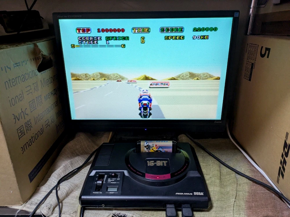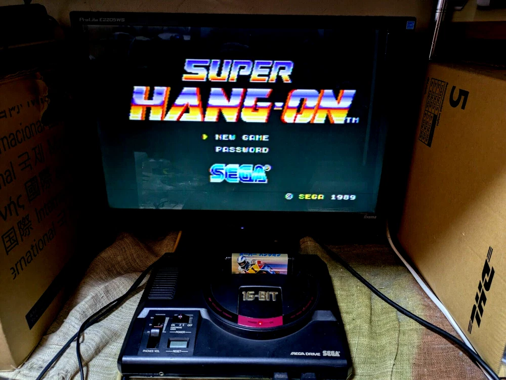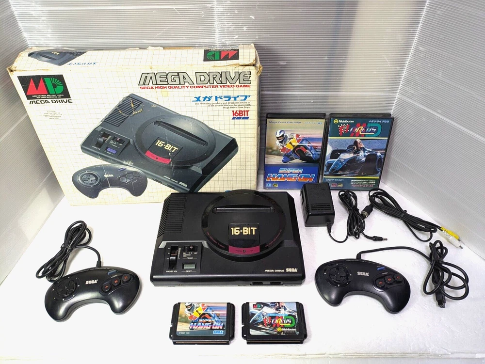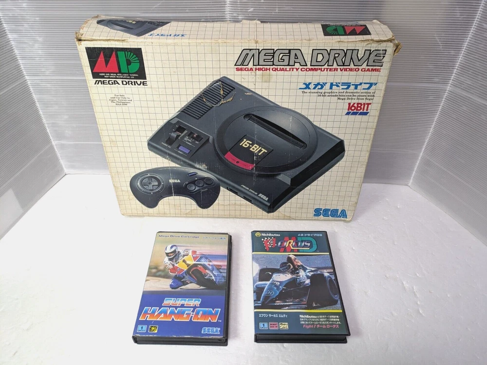 SEGA Mega Drive Console 16BIT 2 Controller Super Hang On Japan Box