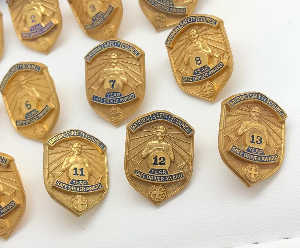 SET OF 13 YEARS NATIONAL SAFETY COUNCIL SAFE DRIVER AWARD LAPEL PINS Pre-owned condition (see all pictures) Inventory number : L301h