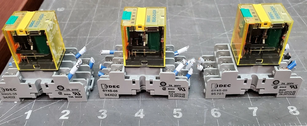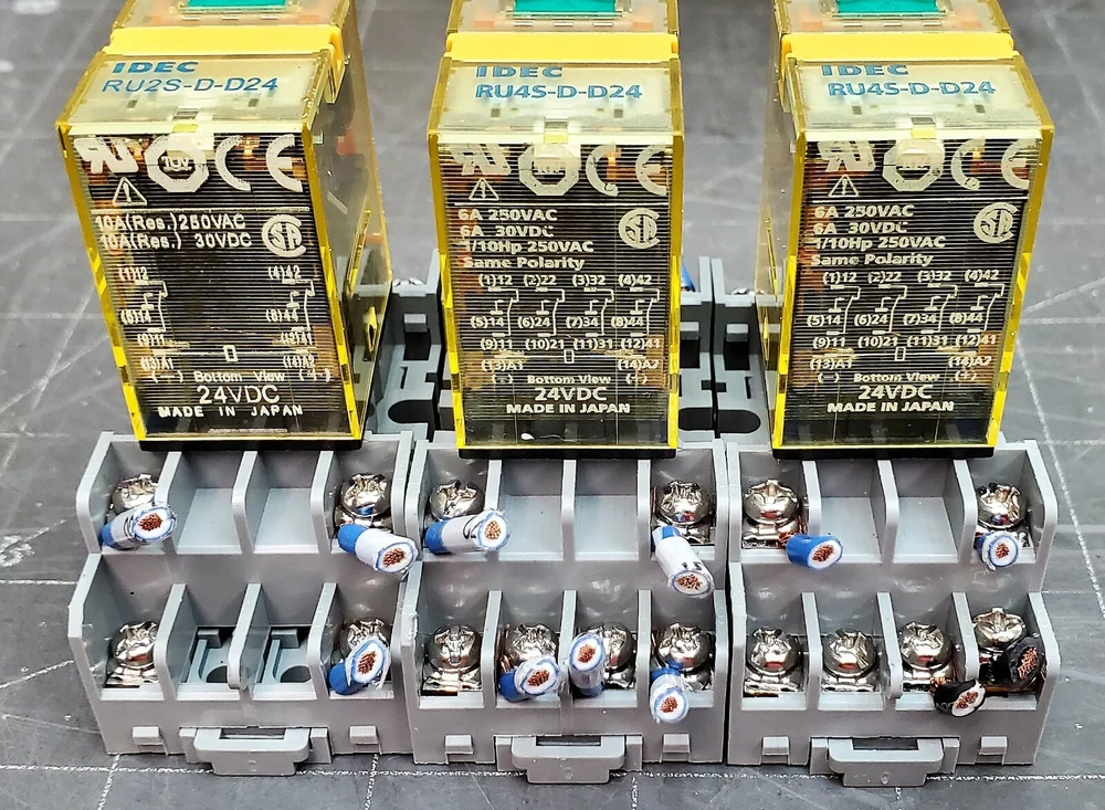 SET OF (3) IDEC RU4S-D- D24 Relays With SY4S-05 Sockets Tested Working Pull [OFB8] You are bidding on a SET OF (3) IDEC RU4S-D- D24 Relays With SY4S-05 Sockets TSTED WORKING PULL. This item came from a working control box. This item came from a working control box from a closed plant. SHIPPING: This item has a shipping weight of 1/2 pounds and will ship FedEx or USPS. Payment: We accept most forms of payment including Credit Cards, Pay-Pal, personal, company and cashier’s checks, pay on pick up. All funds must clear our bank before delivery. Return Policy: Within 30 days after receiving this item and if you believe that we mis- represented it, please email us to set up a return shipment. All freight and handling charges are the responsibilities of the buyer, in both directions. The item must be returned in the same condition that it was shipped. Thank You