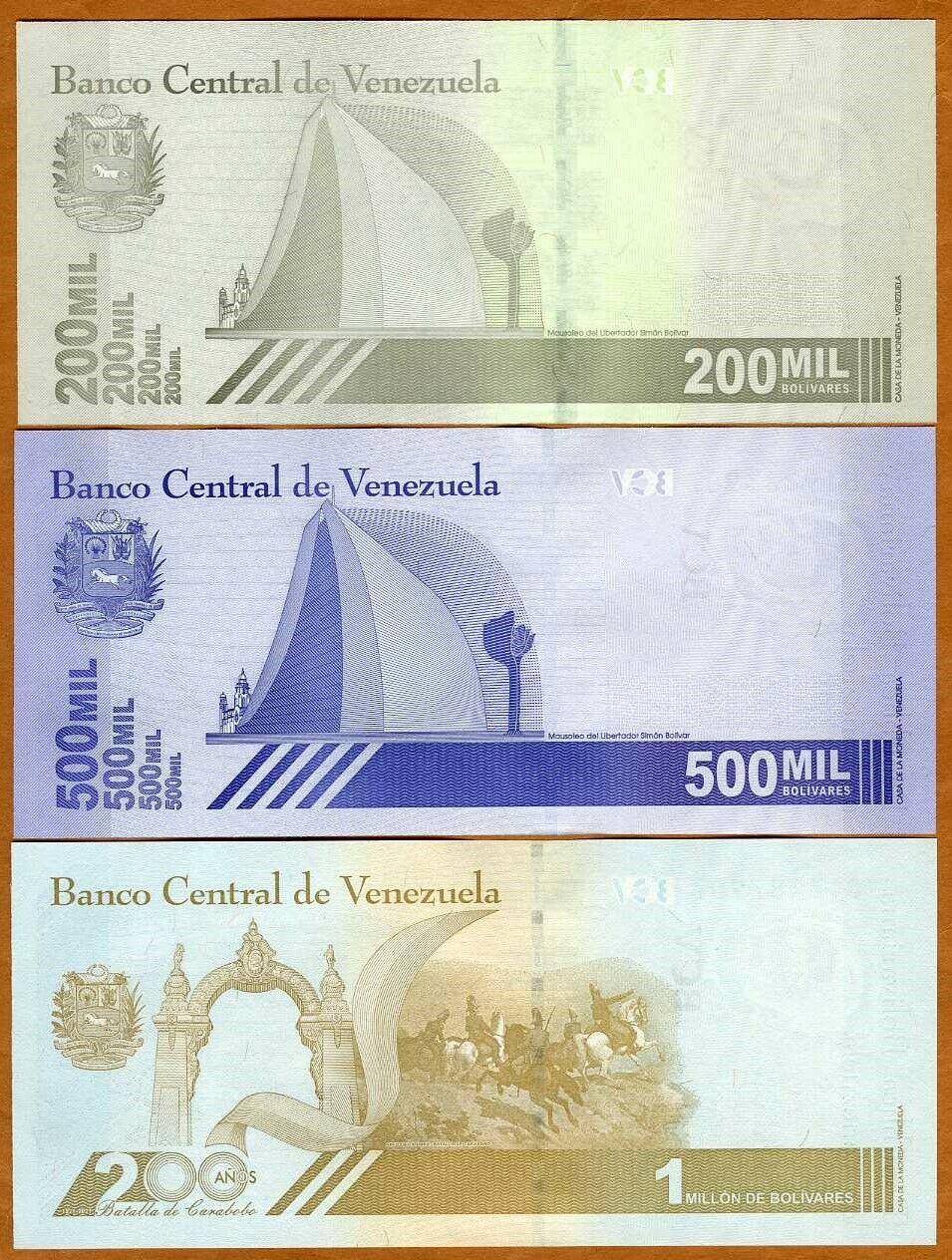Banko Central de Venezuela, 200000-500000-1000000 Bolivares, Set 2020 P-New, vertical obverse Original paper, sharp corners. No papersplits, no folds, no creases. Prefixes vary, the width of the security thread varies, according to the two issued styles. Grade: Uncirculated One flat shipping charge, worldwide, no matter how many items you buy. We are members of the ANA & IBNS (Become a subsriber to my Ebay store and get free email updates on what is new at the store and what is coming. Also get access to special deals, discounts and promotions designed for subsribers only) Please read the terms of sale and shipping terms before you bid, to make sure you understand them correctly. Email me if you have any questions. USA buyers pay $2.50 and ALL International bidders pay $3.00 for for 1st class airmail postage. Registered mail is $13.50. Priority mail is available for $6.00 and INTERNATIONAL priority mail is $12.00 (where available). Only one shipping charge per shipment no matter how many auctions you win (combined shipping)
