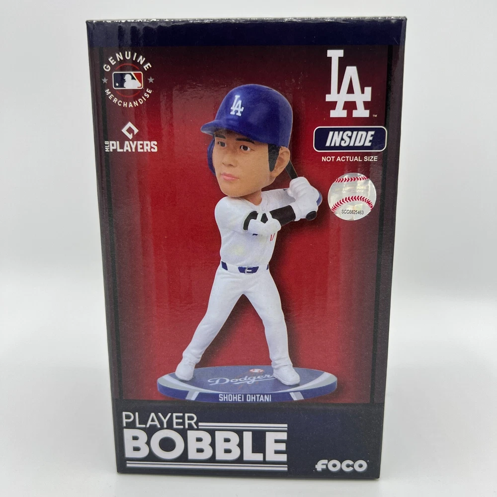 Product: Bobblehead Color: White Officially Licensed: Yes gtin13: 196816824050 Sport: Baseball-MLB Team: Los Angeles Dodgers Brand: Los Angeles Dodgers Country/Region of Manufacture: Jersey Player: Shohei Ohtani Size: 8.5" UPC: 196816824050