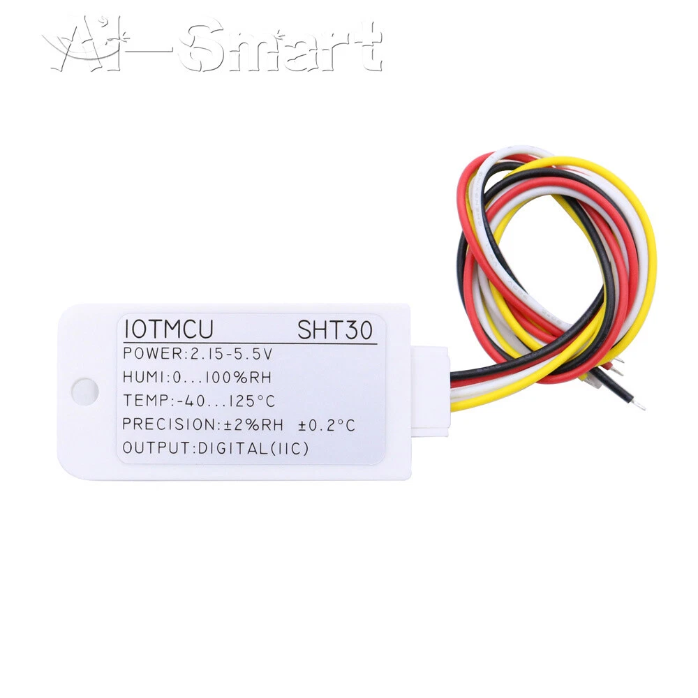 SHT30 Digital Temperature Humidity Sensor IOT-TH02 IIC Probe Module with Housing Features: 1.100% brand new and high quality product. 2.Made of high quality material, durable and practical. 3. Small size, simple application and easy installation. 4. Efficient and stable performance, long working life. 5. Wide range of applications. Product Parameters: Chip Model: SHT30 Operating voltage: 2.15~5.5V Output signal: IIC digital signal Humidity measurement range: 0~100%RH Temperature Measuring Range: -40~125℃ (Please use it in the environment of -40~80℃ as the shell and wire are not high temperature resistant) Accuracy: ±2%RH ±0.2°C IIC address: 0X44 Product shell material: ABS Description of use Pin Color Description 1. Black GND ground 2. Red VCC power (2.15-5.5V) 3. White SDA data line 4.Yellow SCL clock line Packing list: Temperature and humidity sensor *1 Shipping Payment Return Policy Feedback Shipping 1,We will arrange shipping for you within 24 Hours after payment cleared except the holidays. 2,We only ship to the confirmed address provided by PayPal. Before you pay, please make sure your address in PayPal matches the address you would like us to ship to. If not, please let us know before we sent you the package, or we will not be responsible for any loss. hope you could understand. 3,we will ship out the order in 1-2 business days after payment cleared .Since it is international shipping ,delivery time is about 15--28 business days to arrive to most countries. 4,We ship items to Worldwide. Thank you! Payment We accept PayPal payment ONLY. If you do not have Paypal account, please registered with (http://www.paypal.com) Payment must be received within 5 days after auctions ended. Please do not bid if you are not intending to buy. Unpaid dispute will be filed to ebay for the non payable bidders. Return Policy We are not responsible for custom duty or import tax. We will leave POSITIVE FEEDBACK after receiving the payment. Please contact us if your are not satisfied with the item after receive it. We could offer refund, and refund request is available only requests within a week after parcel received & returning the item as the same condition as received. We offer 100% refund if the item is broken before arrival , all you need to do is sending us the clear pictures to show it is broken. Defective situation must be noticed within 7 days after delivery. All emails will be answered within 1 business day. If you do not receive our reply, please kindly re-sent your email,and we will reply to you as soon as possible. All items sold by us are being described to the best of our abilities, as accurate as possible, and with utmost conscientiousness on our part.However, to avoid any potential oversights, I respectfully request your assistance in helping us to make this a mutually satisfactory transaction by Thoroughly reviewing item description and photos, and asking all questions Prior To Bidding. Please Note that size and color representation are subject to manufacturing variance and may not be exact. Also note that monitor settings may vary from computer to computer and may distort actual colors. Please read these terms thoroughly before placing your bid. Feedback We will automatically leave a positive feedback to everyone who has complete the transaction and leave us positive feedback. Please do not forget to give us Five Stars on all of the Detailed Seller Ratings. Thanks! In the unlikely event you are not satisfied with the transaction, please contact us before you sumbit your evaluation. We believe that everything could be solved by communication. 1.in order to provide you the best service*****,please treat the transaction fairly.*feedback is simply what we pursue. 2.Please Do contact us first to get a better solution before you would leave a *neutral or *negative feedback 3.We strive for 5-star service by stating upfront our policies, our shipping rate& our shipping frequency. if you were pleased with this transaction, please respond with all 5 stars! if you are not pleased, simply let me know via e-mial rather than leave low score, and I'll work to make it that way 4.Please email me through 'MY MESSAGES' or "Ask Seller Questions" if you have any question about our listing or your purchase