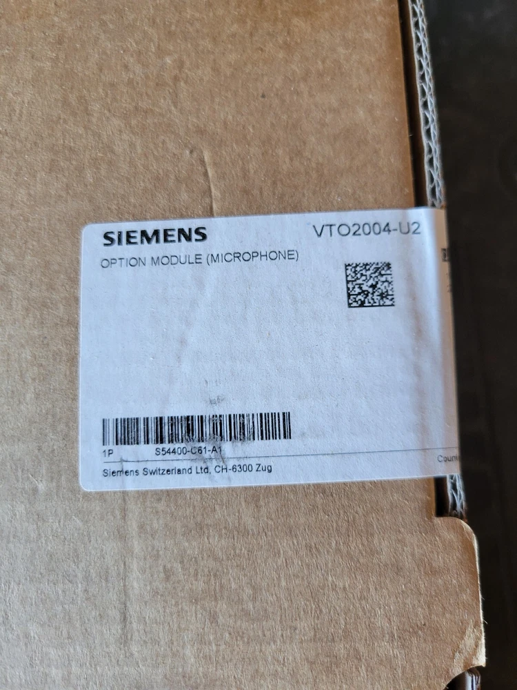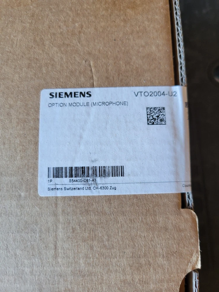 SIEMENS VTO2004- U2 Option module - Microphone. S5400-C61-A1. - NEW/ SEALED. - Great for Onsite Spare - Free shipping VTO2004-U2/U3 Option Module (Microphone) The VTO2004-U2/U3 Option Module (Microphone) illustrated in Figure 1 is installed in the Fire System FS20 to enable firefighters and other safety personnel to make announcements and broadcast safety instructions during emergencies and drills. The VTO2001-U2/U3 can be installed in either or both the FV2025/FV2050 Fire Voice Control Panel or the VR2005-U1 Remote Microphone station. NOTE: The VTO2001-U2/U3 is intended for use in dry, protected environments, only. FEATURES The principal features of the VTO2004-U2/U3 Option Module (Microphone) include: Push-to-talk voice operation with centralized contention resolution Internal microcontroller with remote firmware update capability Tune-down relay muting of local speakers to prevent audio feedback squeal Automatic microphone gain control Microphone supervision of short and open circuit conditions Continuous status monitoring with automatic fault reporting EMC compliant ROHS compliant and meets performance specifications within the temperature range Can be used in UL and ULC markets