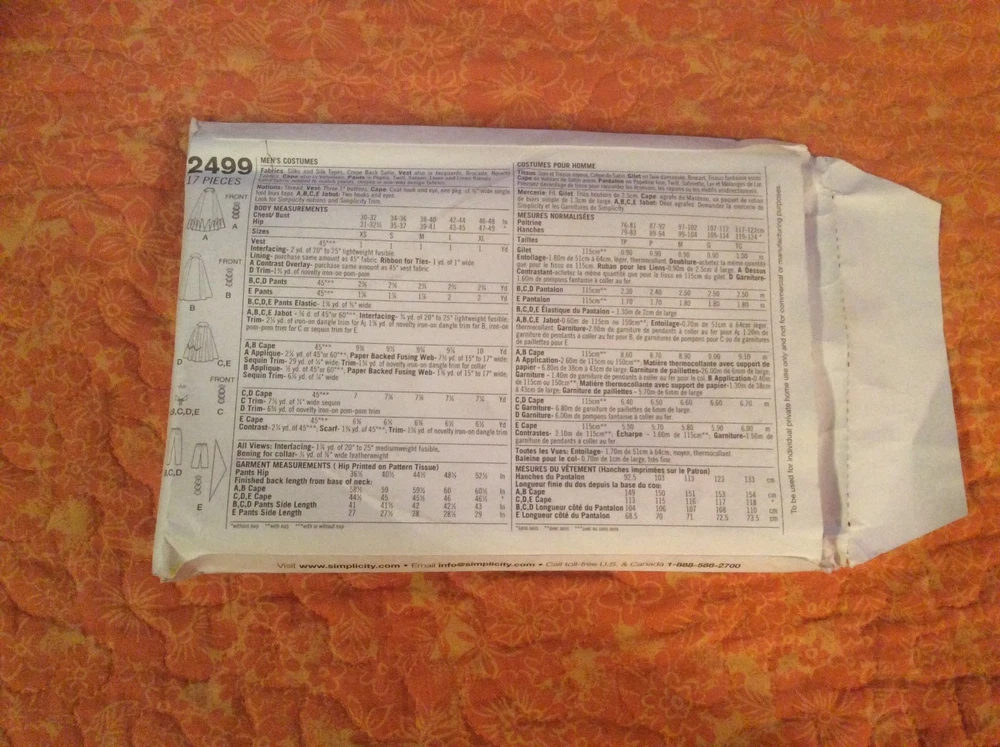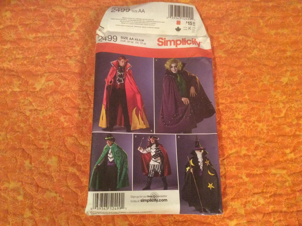 SIMPLICITY COSTUME PATTERN "2499" XS,S,MED. DEVIL, JOKER, PIRATE, WIZARD NEW & UNCUT