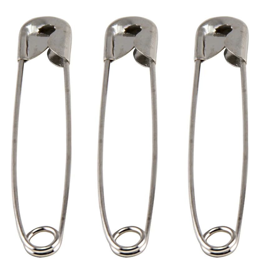 100 large safety pins in jar with colorful pincushion lid A versatile two-in-one product that helps keep the pins neatly organized without allowing them to get scattered on your work table or in your sewing, notions or crafting kit The decorative jar is reusable with a convenient screw-on pincushion top Size 3 (2 inch) safety pins Nickel-plated steel makes them durable, great for crafts, clothing, and sewing projects