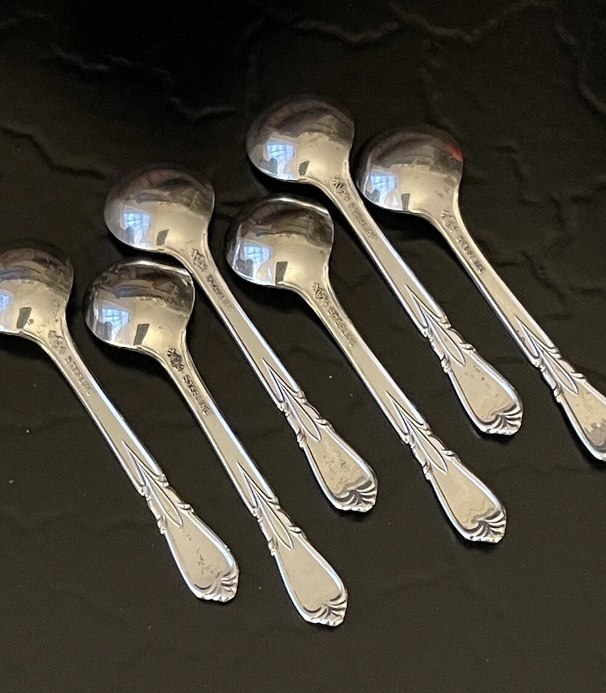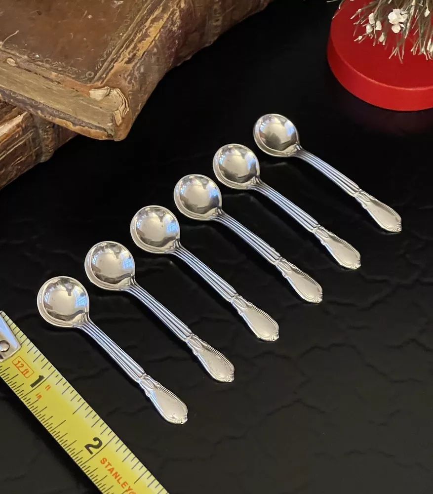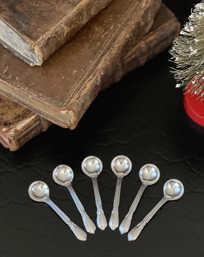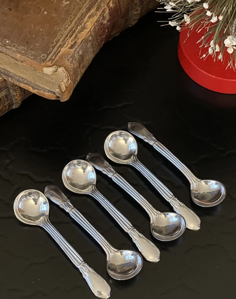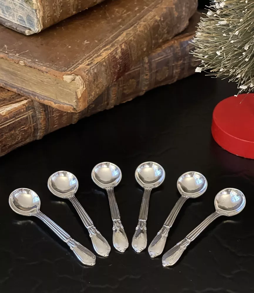 Stunning Rare Quality Art Deco Marked Whiting Troubadoud Sterling Silver Salt Spice Petite Serving Spoon Set of Six β’ Length 2.5β β’ Excellent Condition β’ Rich Luster β’ Kindly View Photo Gallery β’ Marked Sterling to Verso β’ 0.633 ozt Here we have a lovely rare stylish set of six Whiting Troubadour sterling silver petite art deco style salt serving spoons. In a sumptuous design and beautifully modelled in impossibly sweet petite scale, this dreamy scarce quality American made set features an art decor motif pattern, a signature design introduced by Whiting produced between 1932-1950. This a stunning and stylish period example of turn of American aesthetic to own and enjoy. In diminutive scale and quality gauge sterling silver, this stunning six piece set is sure to delight every admirer when enjoyed for display or use. The condition is superb and the patina is smooth and shiny with a rich luster. This scarce and discontinued item has a glorious look and feel to enjoy for generations. Display ready. Happy Bidding!!