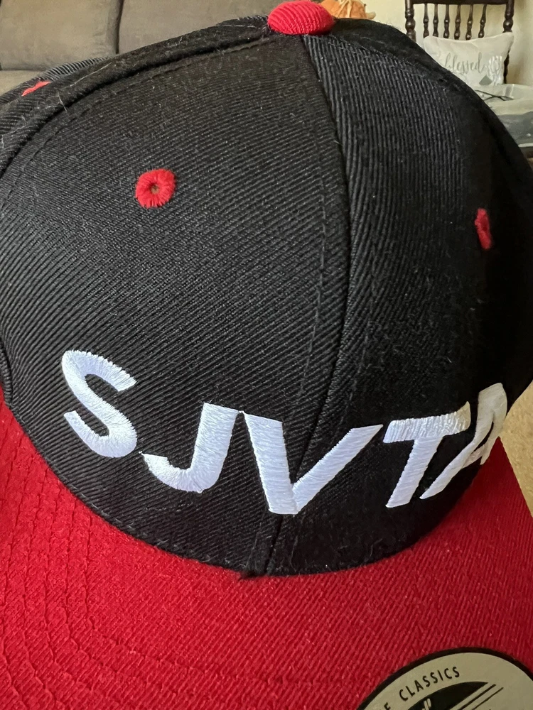 Get ready to hit the road in style with this SJVTA Trucker Style Cap. This cap is perfect for any fashion-forward man looking to add a touch of personality to their wardrobe. Made by Sport-tek, this high-quality cap is built to last and withstand all your adventures. The black and red color combination is a classic trucker hat look that will never go out of style. The one size fits all design ensures a comfortable and secure fit for all head sizes. Whether you're cruising down the highway or hitting the local hangout, this cap is the perfect accessory to complete your outfit.