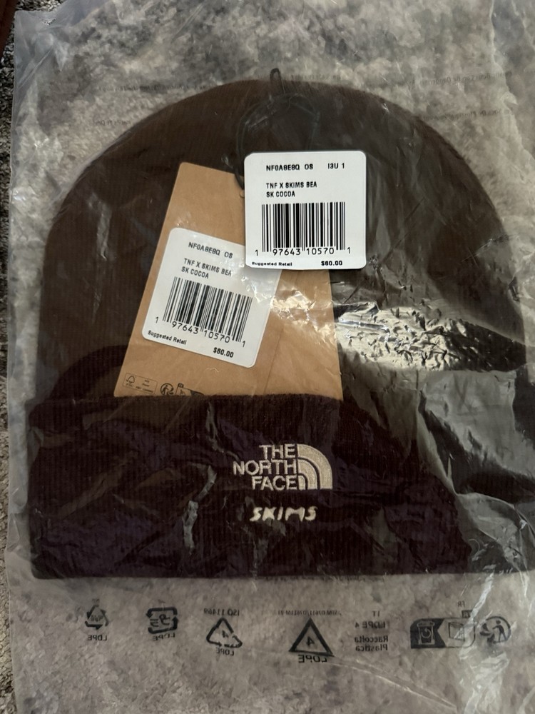 This beanie is a game-changer! Super soft, cozy, and fits perfectly. The cocoa color is rich and versatile, and the quality is amazing—just what you'd expect from SKIMS and The North Face. Arrived brand new with tags and shipped fast. Love it!