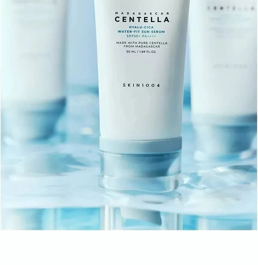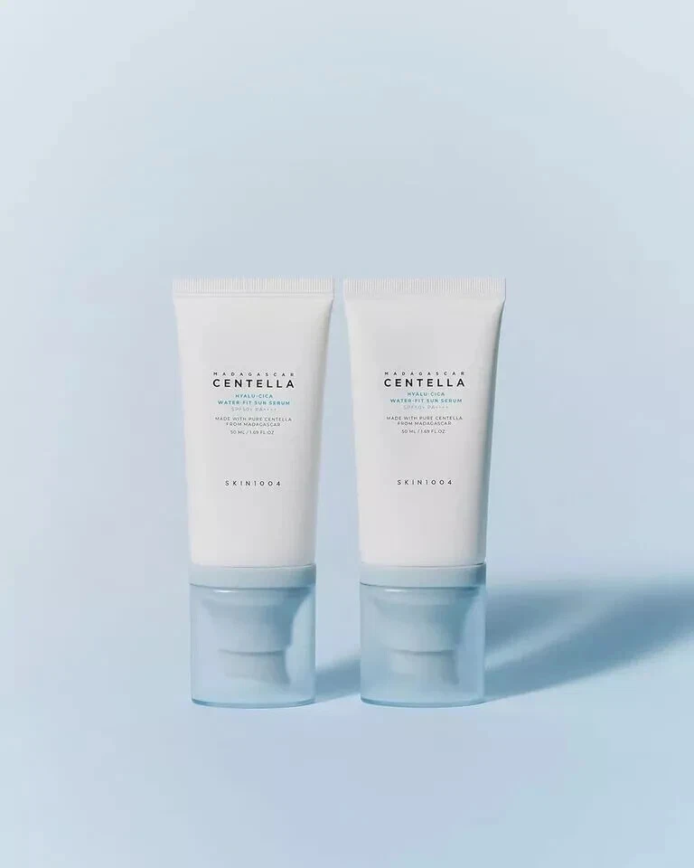 The SKIN1004 Madagascar Centella Hyalu-cica Water-Fit Sun-serum SPF50+ Twin Pack is a revolutionary skincare product that combines advanced sun protection with skin-nourishing ingredients. This serum is formulated with Centella Asiatica extract from Madagascar, known for its soothing and healing properties. It contains Hyaluronic Acid, which deeply hydrates the skin and improves elasticity. The lightweight texture of the serum makes it easy to apply and absorbs quickly into the skin without leaving a greasy residue. With SPF50+ PA++++, it provides high-level protection against both UVA and UVB rays, preventing sunburn and premature aging. The twin pack offers great value for money, ensuring you have a backup supply of this essential skincare item. It is suitable for all skin types, including sensitive skin, and can be used daily as part of your skincare routine. The serum helps to brighten the complexion, reduce redness, and promote a more even skin tone over time. Its non-comedogenic formula won't clog pores, making it ideal for acne-prone skin as well. Overall, the SKIN1004 Madagascar Centella Hyalu-cica Water-Fit Sun-serum SPF50+ Twin Pack is a must-have for anyone looking for effective sun protection and skin hydration in one product.