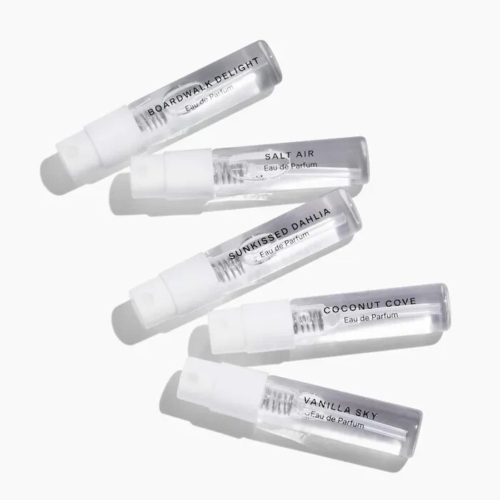 Set Description: Discover your new forever fragrance with Skylar’s Discovery Set, featuring five irresistible bestsellers: Boardwalk Delight, Sunkissed Dahlia, Vanilla Sky, Coconut Cove, and Salt Air. Wear them alone or layer them together to create your own unique fragrance blend. About the Fragrance: Practice safe scent with Skylar’s clean, hypoallergenic fragrances that are formulated for sensitive skin. Perfect for layering or wearing individually, Skylar’s scents are created to leave an unforgettable impression. This Set Contains: - 5 x 0.05 oz/ 1.5 mL fragrances in Boardwalk Delight EDP, Vanilla Sky EDP, Coconut Cove EDP, Sunkissed Dahlia EDP, Salt Air EDP