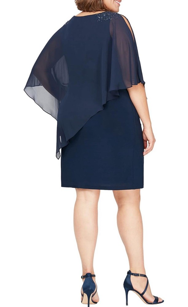 This beautiful S.L. Fashions dress is the perfect addition to any wardrobe. The sleeveless design and crew neckline make it a versatile choice for any occasion, whether it's a wedding, party, or formal event. The pullover closure and beaded accents add a touch of elegance to the dress, while the short length makes it suitable for any season. Made from high-quality polyester material, this dress is both comfortable and durable. The dress is available in size 18W and comes in a stunning navy color. The dress is perfect for women who want to look and feel their best.