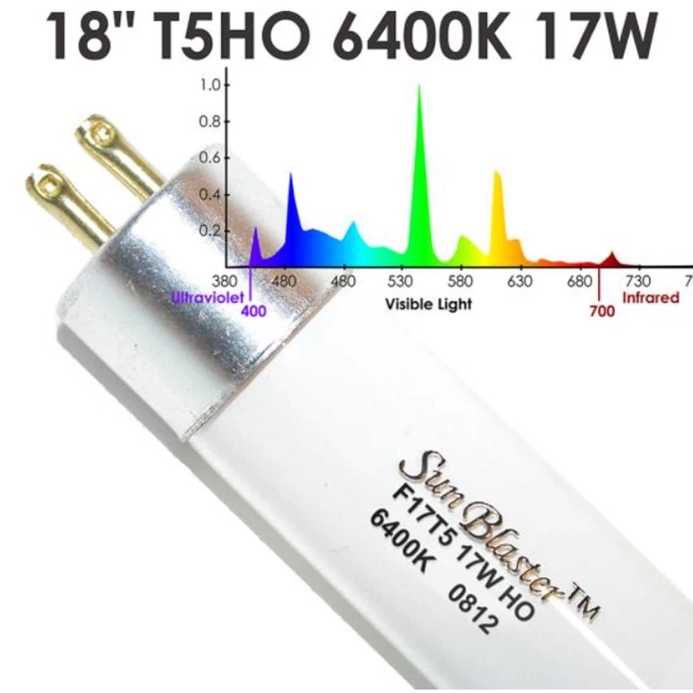 These Combos include our T5HO Electronic ballast, 6400K lamp, power cord, and jumper plug with both hanging and flat surface mounting clips. Sun Blaster T5HO fixtures link together, regardless of length, to a maximum of 8 per single power cord. It doesn't get easier or better than this. REFLECTOR: This 4 Foot NanoTech High Output grow light lamp and reflector produce more light, spreads it wider across the plant canopy, and deeper into the plant foliage, without consuming any additional power FEATURES: The NanoTech T5 reflector captures 99.9% of previously lost light while increasing lumen availability up to 300%, with an average increase of available light of 48%; Fixtures can be placed 6 - 8 inches above the plant canopy maximizing photosynthetic response and growth YEARS OF USE: The most T5HO lighting combo provides the ideal spectrum for , cuttings, and plant growth; The reflector extends lamp and ballast life by reducing heat and provides up to 48% additional high-quality light. DAISY CHAIN: You can link up to 8 units from a single power cord and the self-ballasted design with no adaptors required; Full spectrum light provides the highest quality grow lighting available for a wide variety of indoor home garden uses KIT INFO: Includes a power cord, jumper plug, and hanging and flat surface mounting clips; for 10,000 hours, 17 Watts, 120 Volts, 1120 Lumens, and a color temperature of 6400K; Dimensions (L x W x H): 21.5 x 3.5 x 2 inches