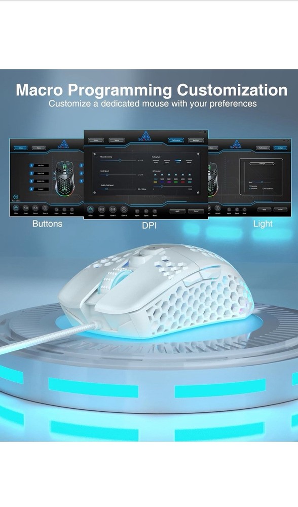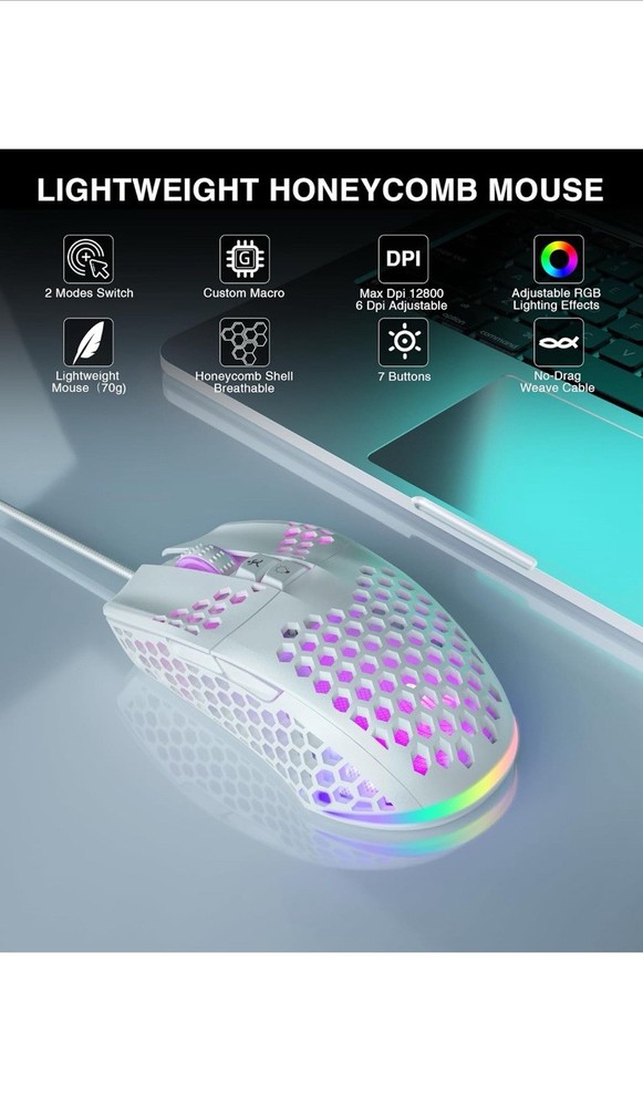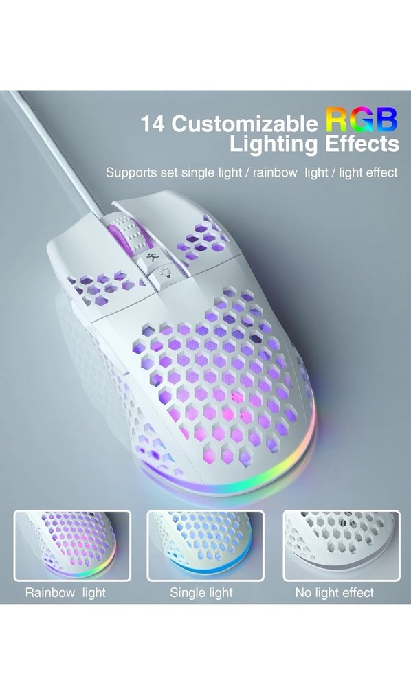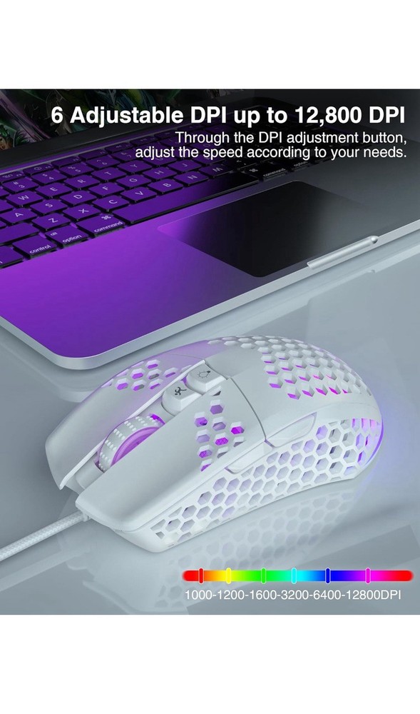 HomeSM900 White Honeycomb Gaming Mouse with 12800 DPI and 7 Programmable Buttons