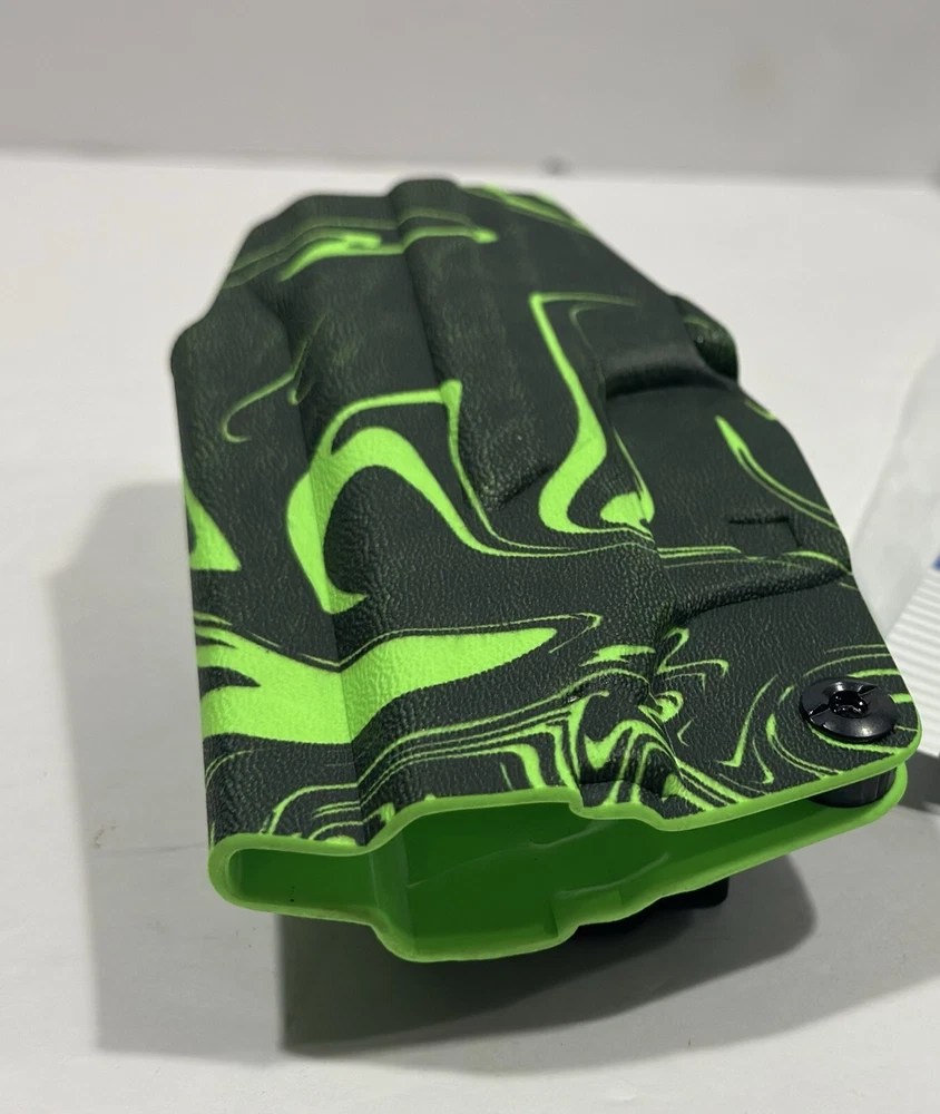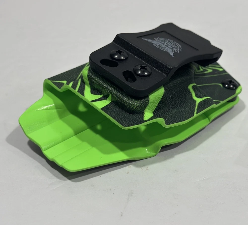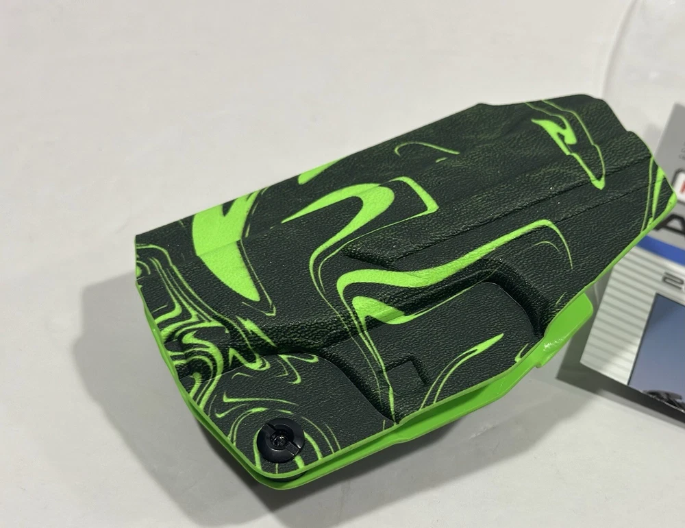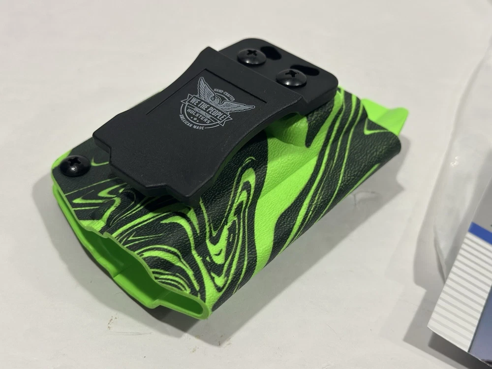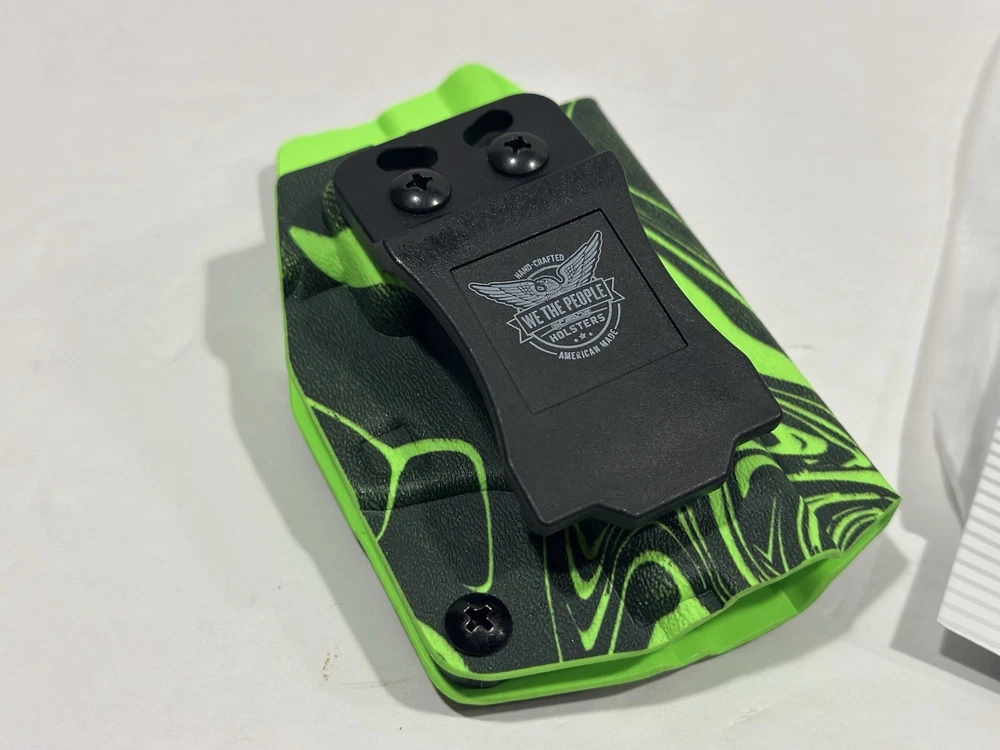 SMITH & WESSON M&P BODYGUARD 380 IWB HOLSTER - Color /Green Ink Swirl This Smith & Wesson M&P Bodyguard 380 holster is a durable, dependable, and form-fitting piece, offering effective concealment and quick, reliable access. Makes it easier to draw and re-holster the gun while keeping your eye on the possible threat or target instead of precious seconds spent searching for the holster. It will also make accidentally re-holstering your gun along with part of your shirt less of an issue Made in the USA Lifetime guarantee Inside the waistband (holster only) Fits a 1.5 inch belt