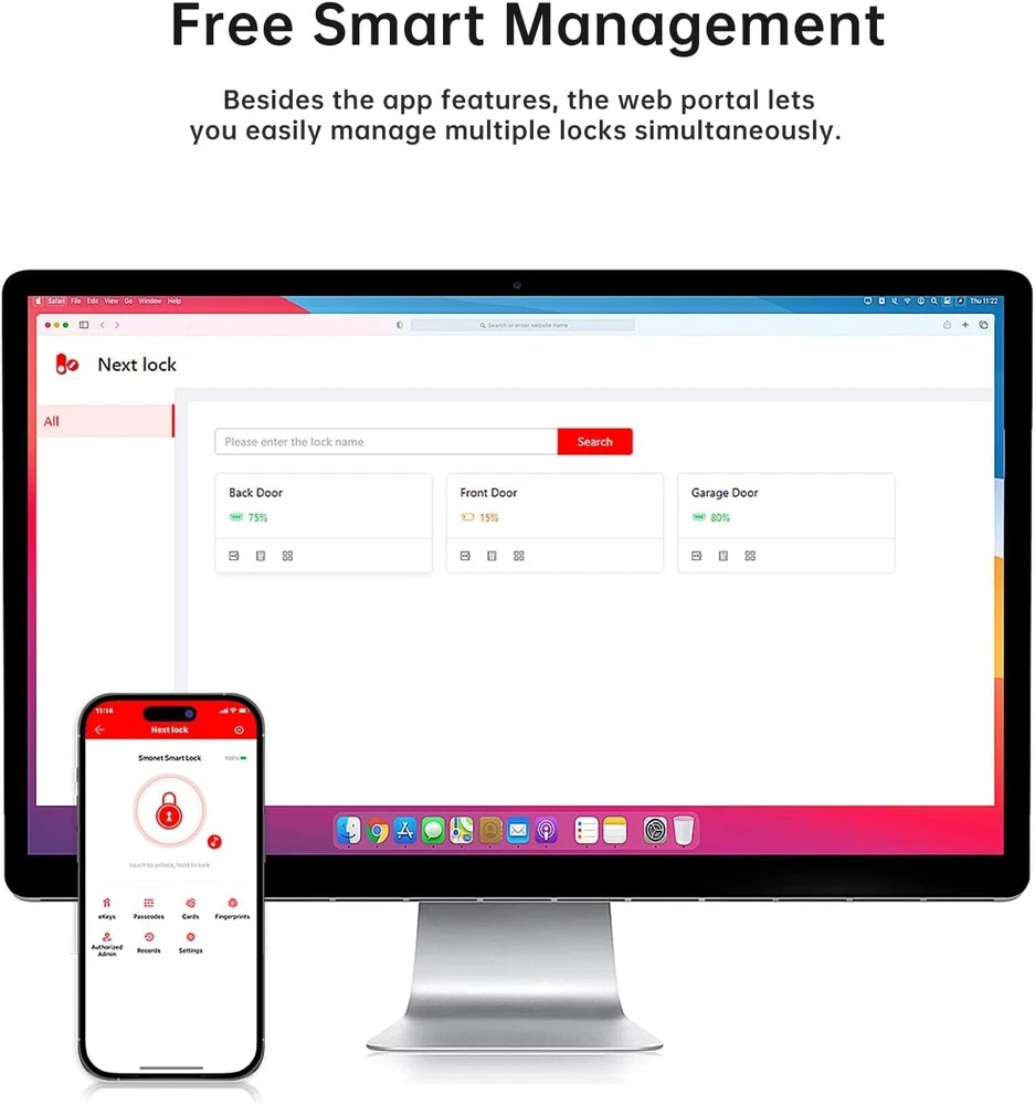 Smart Deadbolt, SMONET Fingerprint Electronic Deadbolt Door Lock with Keypad-Bluetooth Keyless Entry Front Door Digital Keypad App Control, Ekeys Sharing, App Monitoring Auto Lock for Homes and Hotel - Silver About this item ใ๐๐๐ฌ๐ฉ๐จ๐ง๐ฌ๐ข๐ฏ๐ ๐๐ ๐ ๐ข๐ง๐ ๐๐ซ๐ฉ๐ซ๐ข๐ง๐ญ ๐๐จ๐จ๐ซ ๐๐จ๐๐คใ: SMONET Smart Lock can recognize your fingerprint in just 0.5 seconds, and unlock your door in 1 second, faster than fumbling for your keys. ใ๐ ๐ข๐ง ๐ ๐๐ฆ๐๐ซ๐ญ ๐๐จ๐จ๐ซ ๐๐จ๐๐คใ: 7 ways to unlock your door - APP, Keypad, Fingerprint, iWatch, Voice Control, IC Fob and Mechanical Keys. Paring with Smonet wifi gateway, device user could remotely control your smart door lock anywhere anytime, set up codes remotely and check real-time access log. ใ๐๐ฎ๐ฌ๐ญ๐จ๐ฆ๐ข๐ณ๐๐ ๐๐๐ง๐๐ ๐๐ฆ๐๐ง๐ญใ: Sign in APP of Bluetooth Locks for Front Door, you could check the records about unlocking and wrong passcode in real time. Code Door Lock allow setting to generate Timed, Permanent, One-time or Customized passcode for guests, friends, housekeepers or employees. ใ๐๐๐๐ฎ๐ซ๐ ๐๐ง๐ ๐๐ฎ๐ซ๐๐๐ฅ๐ใ: Intuitive touchscreen display, Alloy body, Long Battery Life, 4pcs AA batteries can provide 10,000 openings (approx. 12 months), For security reason, it will automatically lock for 5 minutes when enter the password incorrectly more than 5 times. A great solution for home hotel etc. ใ๐๐๐ฌ๐ฒ ๐ญ๐จ ๐๐ง๐ฌ๐ญ๐๐ฅ๐ฅใ: With only a screwdriver and 10 minutes of your time, you can easily install our electronic door lock yourself, saving you money on contractor fees. B08HLH2ZHP
