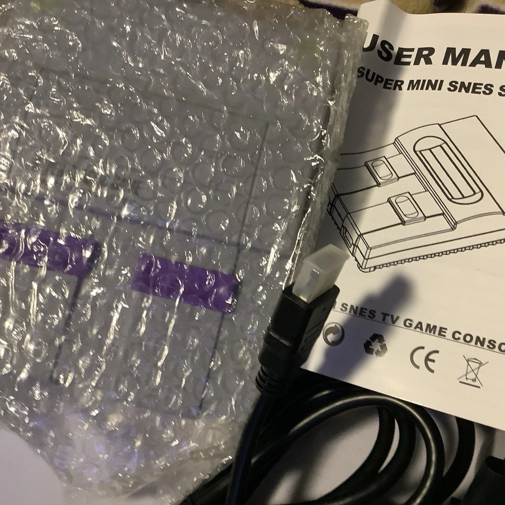 The SNES Mini Console is a gray home console that comes with built-in games and two controllers. It features HDMI connectivity for modern TVs and has a storage capacity of 512 MB. This model is reminiscent of the classic SNES system, offering a nostalgic gaming experience with the convenience of pre-loaded games and updated connectivity options. Perfect for retro gaming enthusiasts or those looking to relive the magic of classic SNES titles with a modern twist.