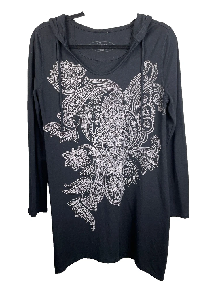 SOMA Lounge Dress Size Medium Hooded Black Floral Paisley SUPER SOFT Comfy Cozy
