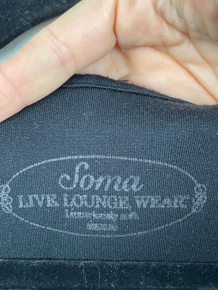 Sleeve Length: Long Sleeve Theme: Flower, goth, loungewear, witchy Garment Care: Machine Washable Size: M Material: Modal, Spandex Color: Black Brand: Soma Season: Fall, Spring, Summer, Winter Size Type: Regular Department: Women Style: Loungewear Pattern: Floral Dress Length: Short Country/Region of Manufacture: Vietnam Occasion: Casual, Travel Features: Hooded Closure: Pullover