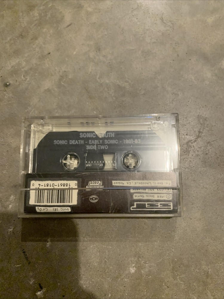 This vintage cassette tape features the iconic grunge band Sonic Youth and their album "Sonic Death." The cassette is a first edition release from 1988 under the record label SST. The case is a standard jewel case with a clear color and the cassette is in good (G) condition. The inlay is very good (VG) and the edition is a rare find for collectors. The album features a variety of instruments including double bass, guitar, acoustic guitar, cello, recorder, percussion, bass guitar, electric guitar, voice, and drums. The music style is a mix of progressive, alternative, rock, punk, acoustic, grunge, rock 'n' roll, metal, and rock & pop. This cassette also includes the original inner sleeve and cover, making it a must-have for any Sonic Youth fan or collector of vintage music cassettes.